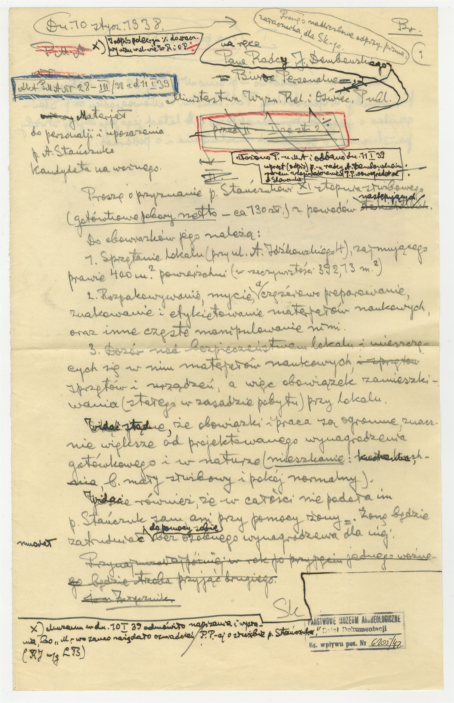 Rękopis - brudnopis listu Stefana Krukowskiego z dnia 10 stycznia 1938 roku do J. Dembowskiego w sprawie uposażenia A. Stańczuka