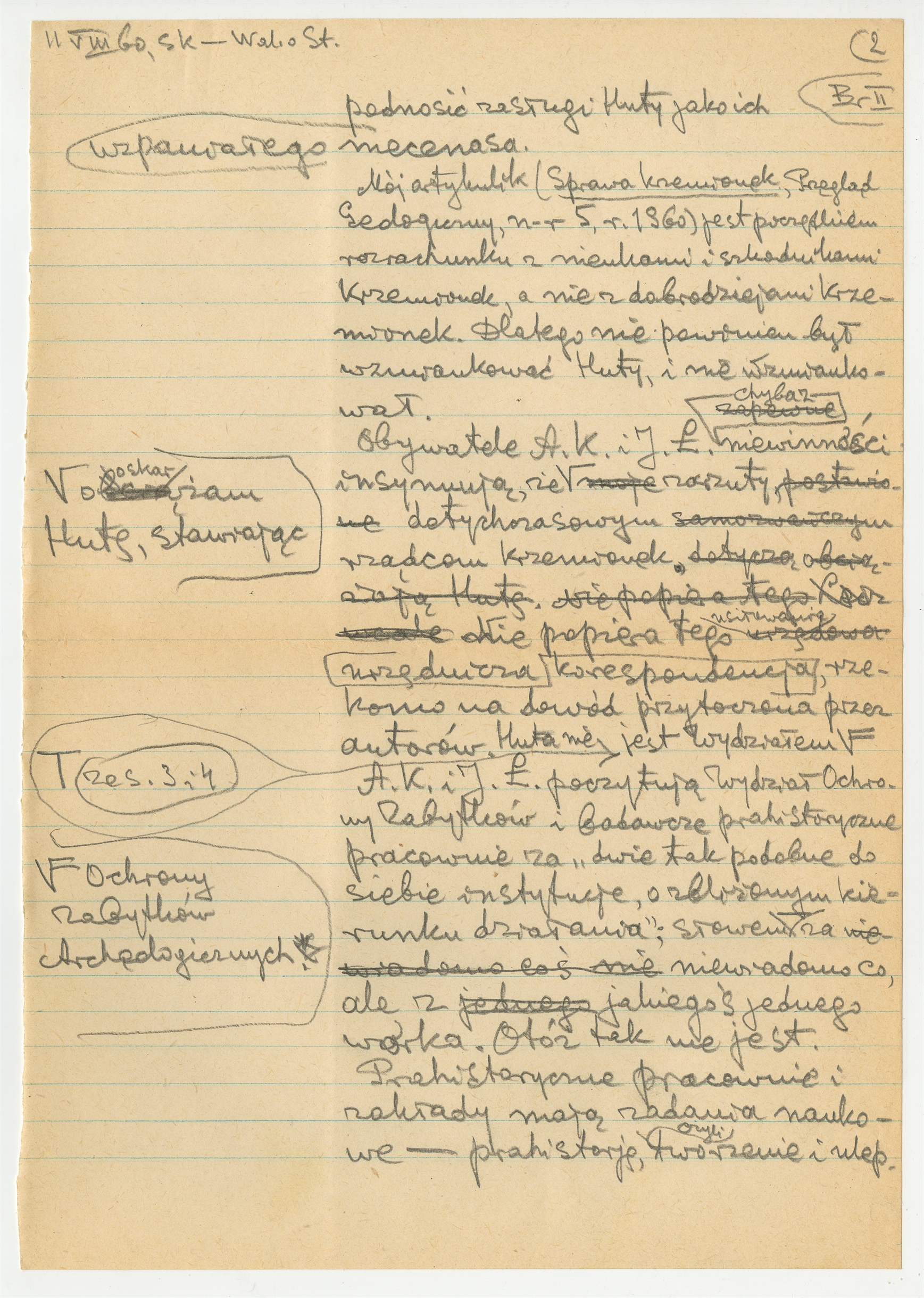 Rękopis - brudnopis listu Stefana Krukowskiego z dnia 11 VIII [19]60 roku do Kolegium Redakcyjnego tygodnika "Walczymy o Stal". Strona 2