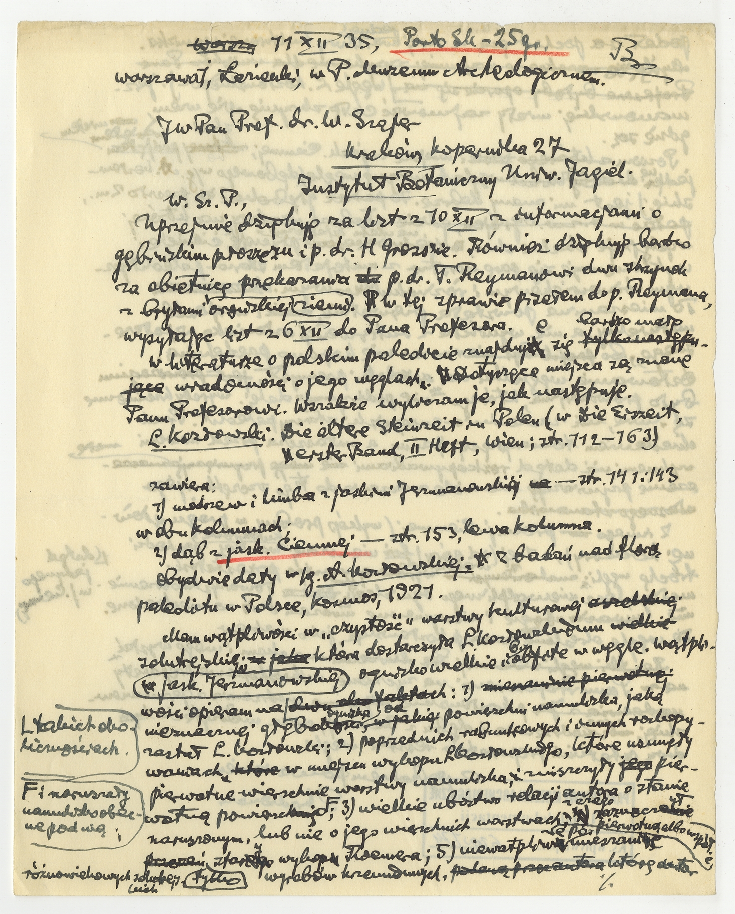 Rękopis - brudnopis listu Stefana Krukowskiego z dnia 11 XII [19]35 roku do prof. W. Szafera