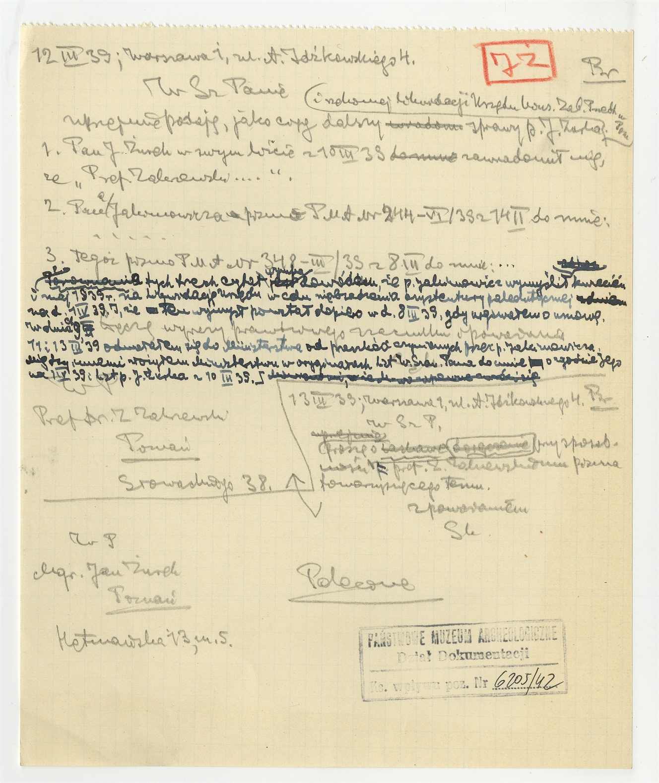 Rękopis - brudnopis listu Stefana Krukowskiego z dnia 12 III [19]39 roku do prof. Z. Zakrzewskiego
