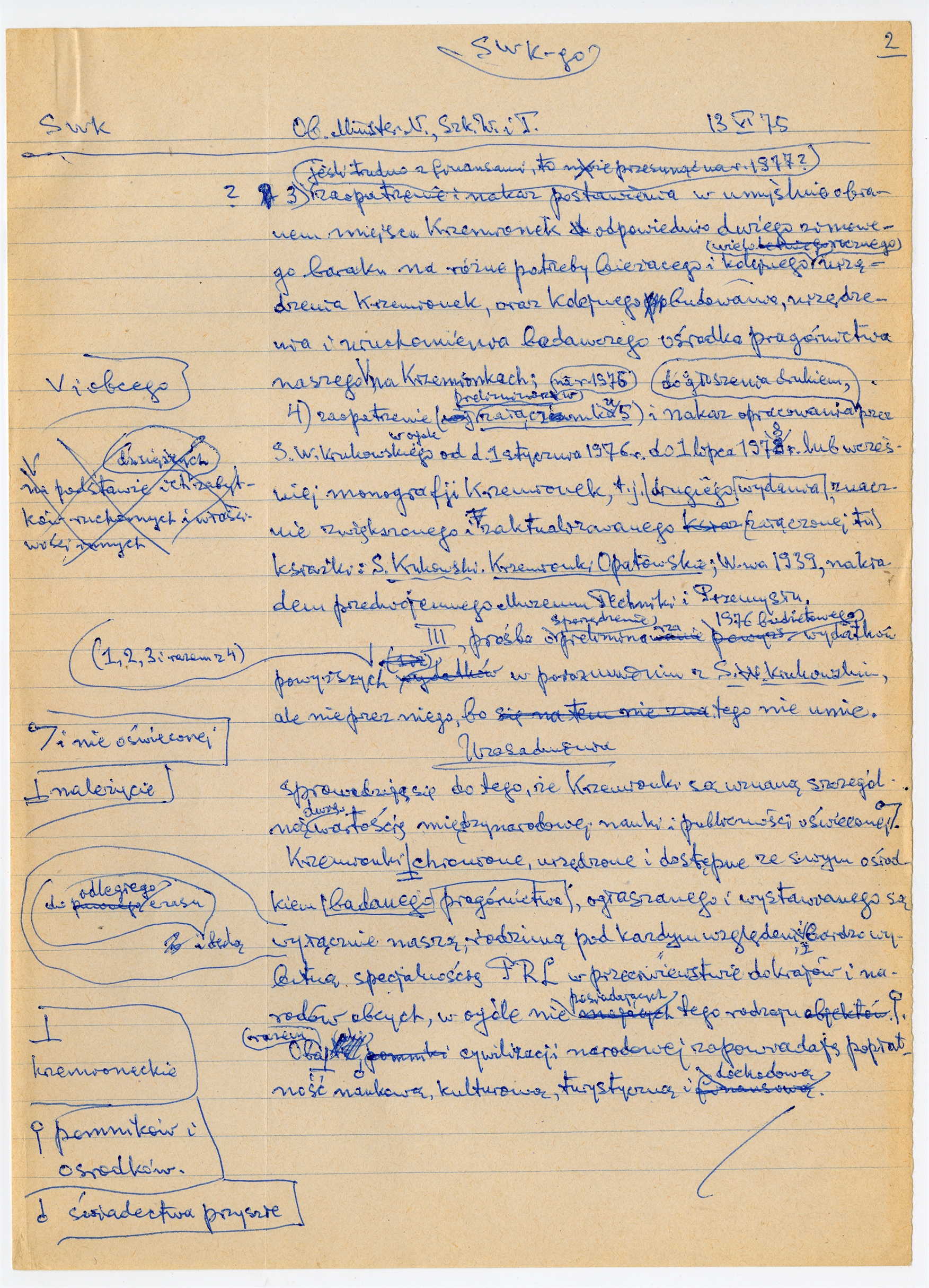 Rękopis - brudnopis listu Stefana Krukowskiego z dnia 13 czerwca 1975 roku do Sylwestra Kaliskiego Ministra Nauki Szkół Wyższych i Techniki (cd) - strona 2