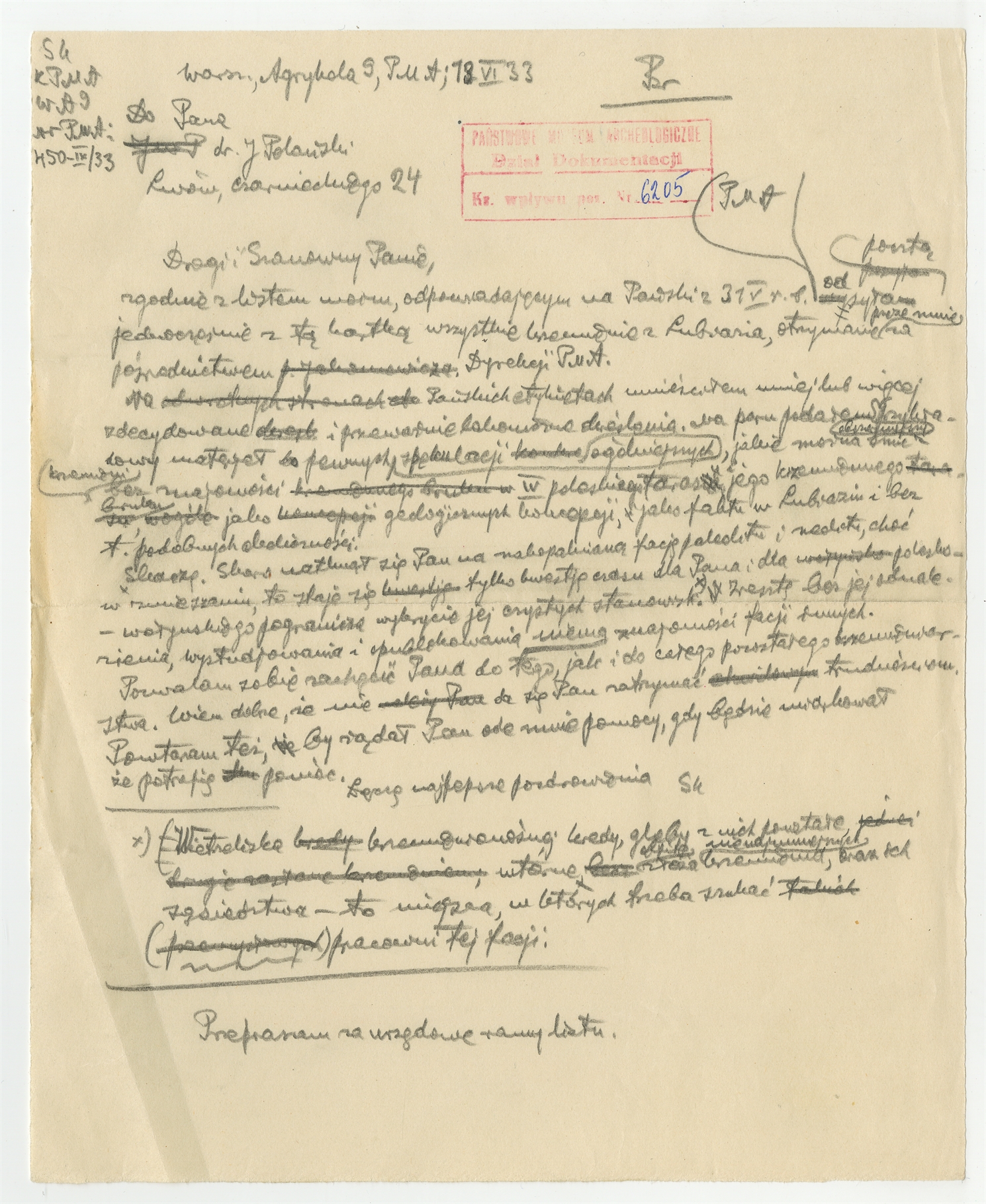 Rękopis - brudnopis listu Stefana Krukowskiego z dnia 13 VI [19]33 roku do Jerzego Polańskiego