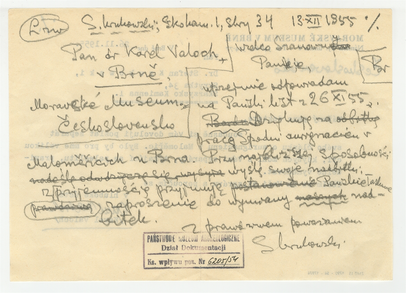 Rękopis - brudnopis listu Stefana Krukowskiego z dnia 13 XII 1955 roku do Karela Valocha