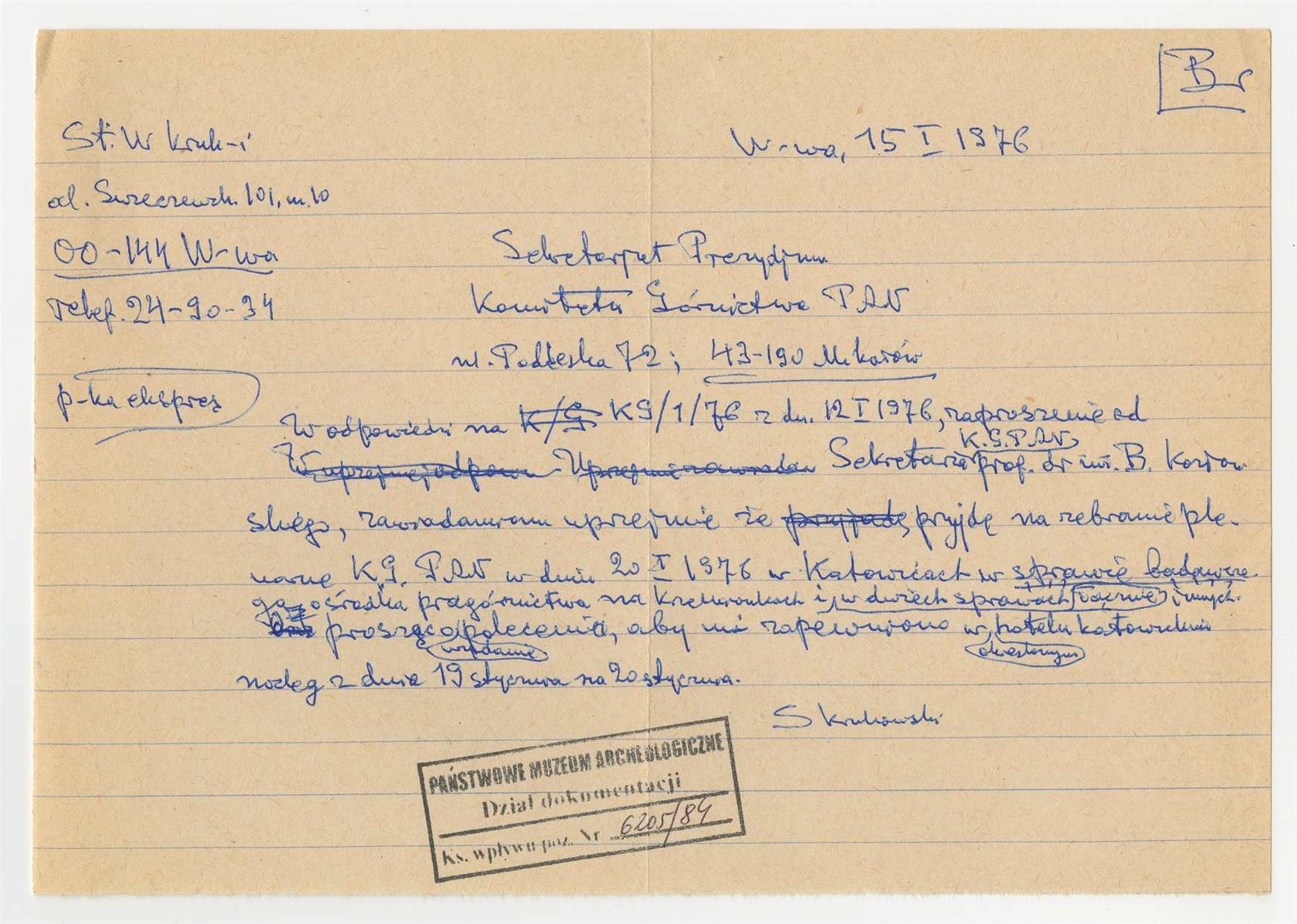 Rękopis - brudnopis listu Stefana Krukowskiego z dnia 15 I 1976 roku do Komitetu Górnictwa PAN