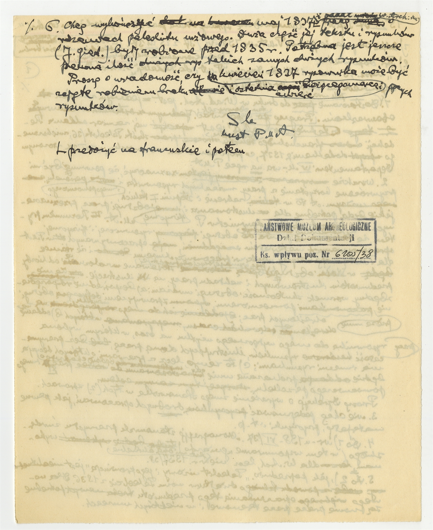 Rękopis - brudnopis listu Stefana Krukowskiego z dnia 15 III [19]37 roku do Dyrekcji PMA i do Redakcji "W.Arch" (cd)
