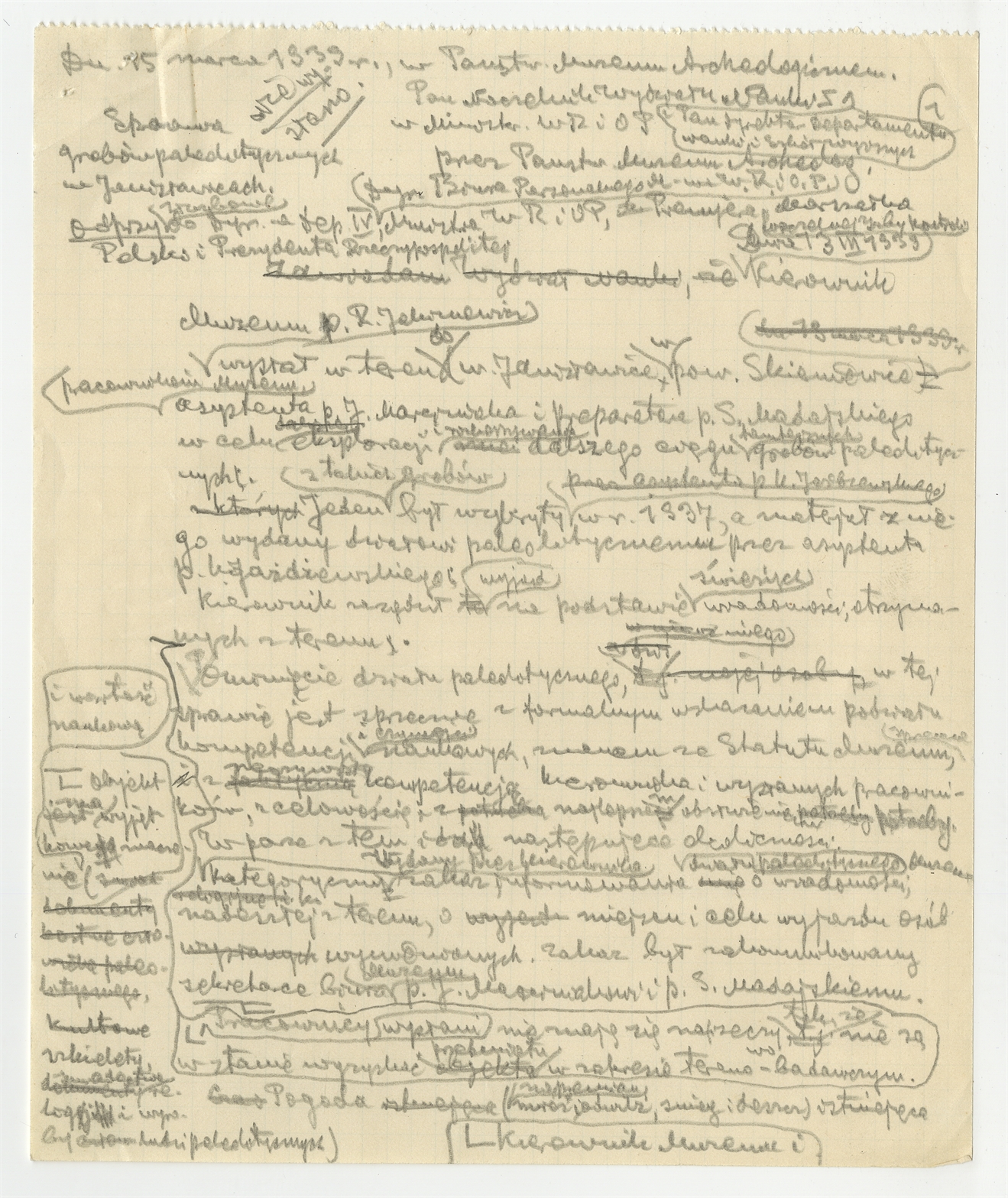 Rękopis - brudnopis listu Stefana Krukowskiego z dnia 15 marca 1939 roku do Naczelnika Wydziału Nauki Ministerstwa W.R. i O.P. (Wersja niewysłana). Strona 1