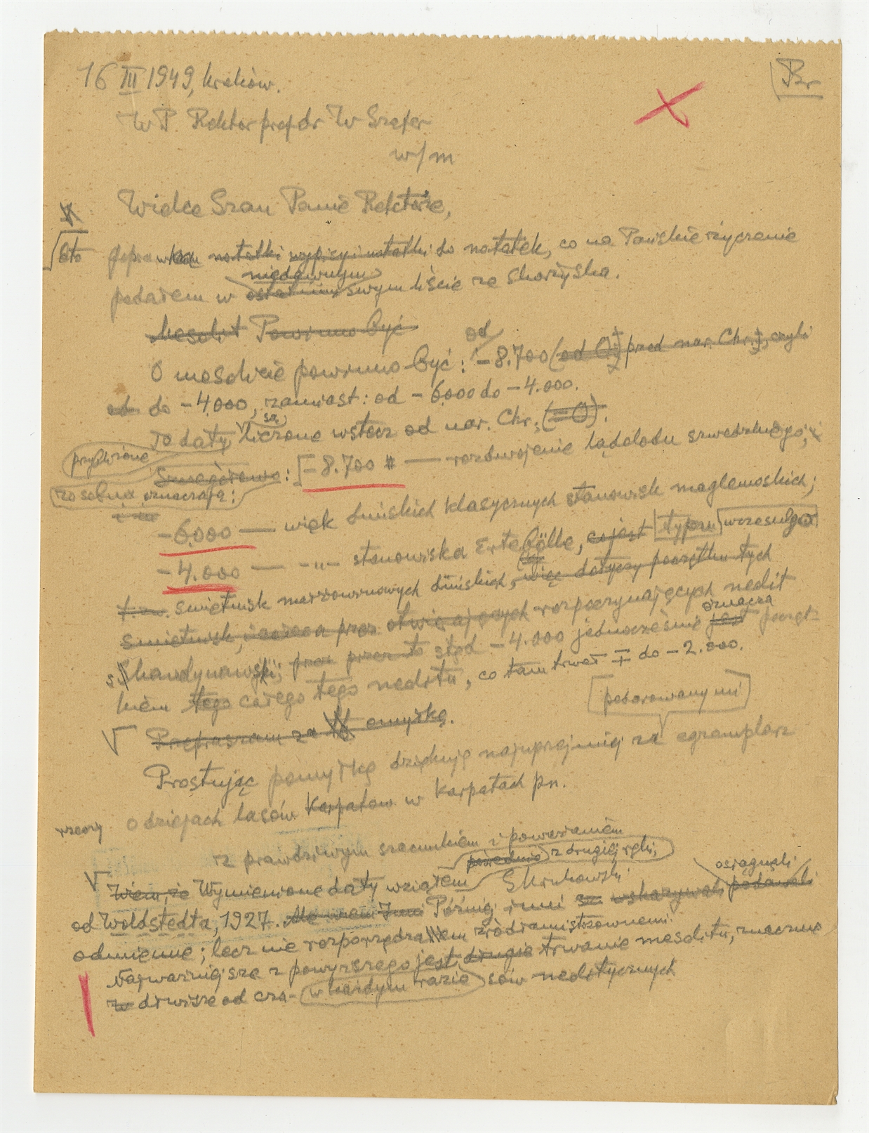 Rękopis - brudnopis listu Stefana Krukowskiego z dnia 16 III 1949 roku do W. Szafera