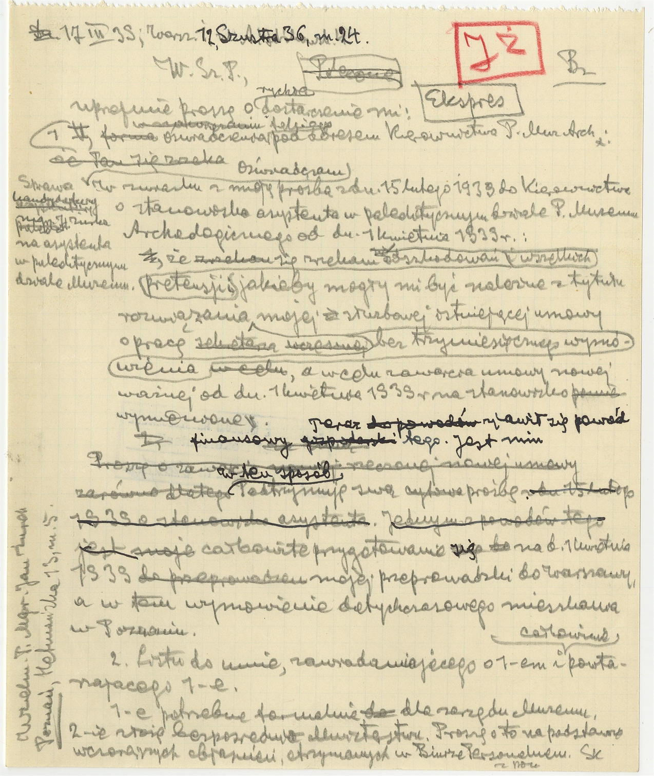 Rękopis - brudnopis listu Stefana Krukowskiego z dnia 17 III [19]39 roku do Jana Żurka