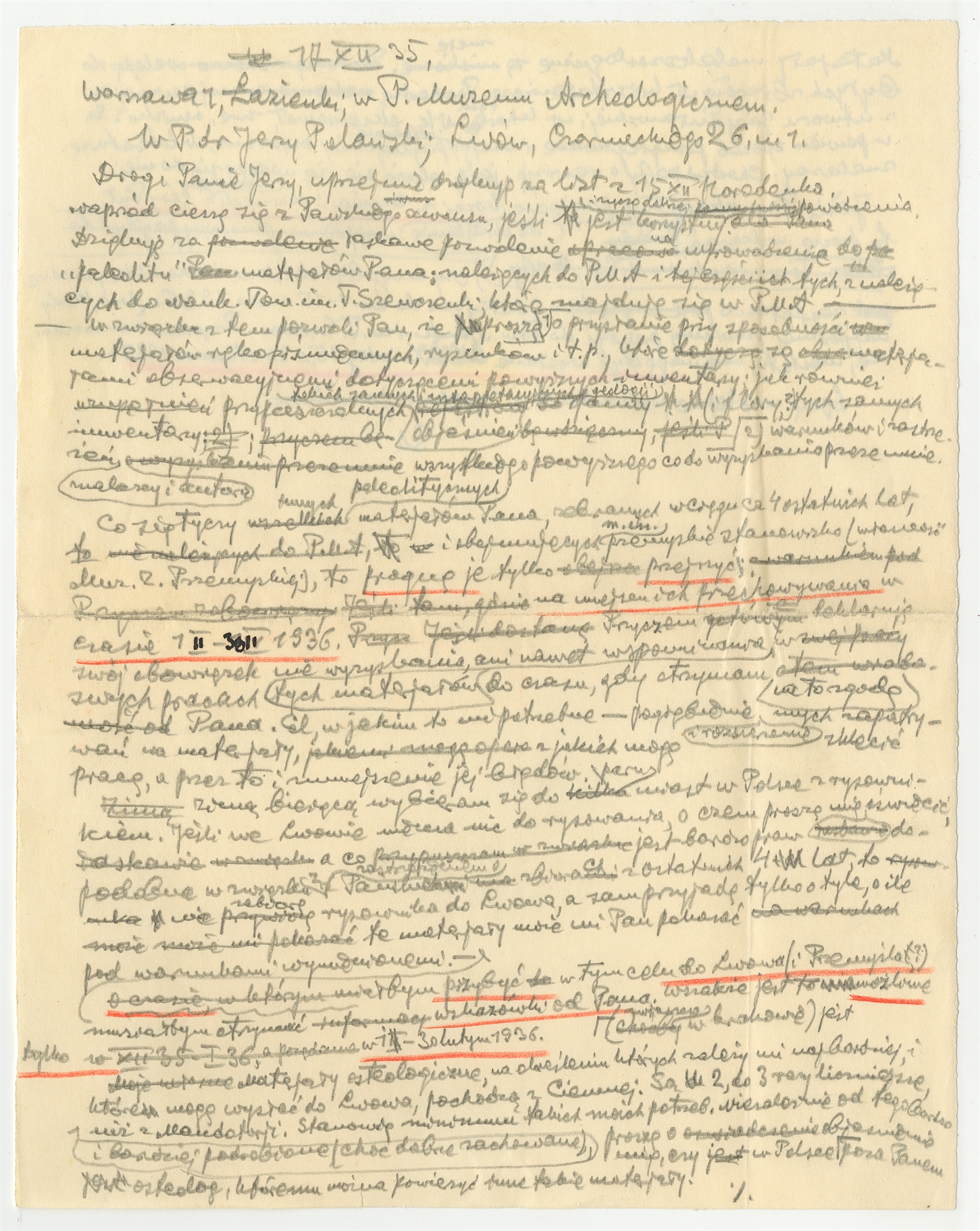 Rękopis - brudnopis listu Stefana Krukowskiego z dnia 17 XII 1935 roku do Jerzego Polańskiego