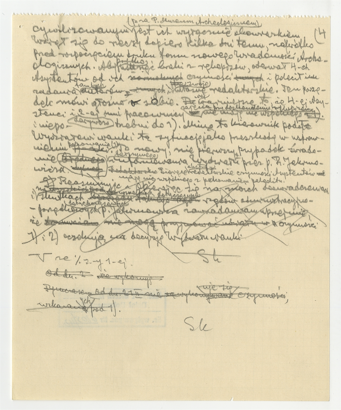 Element 5 - Rękopis - brudnopis listu Stefana Krukowskiego z dnia 18 lutego 1939 roku do Naczelnika Wydziału Nauki Ministerstwa W.R. i O.P. w sprawie przeprowadzki. Strona 4