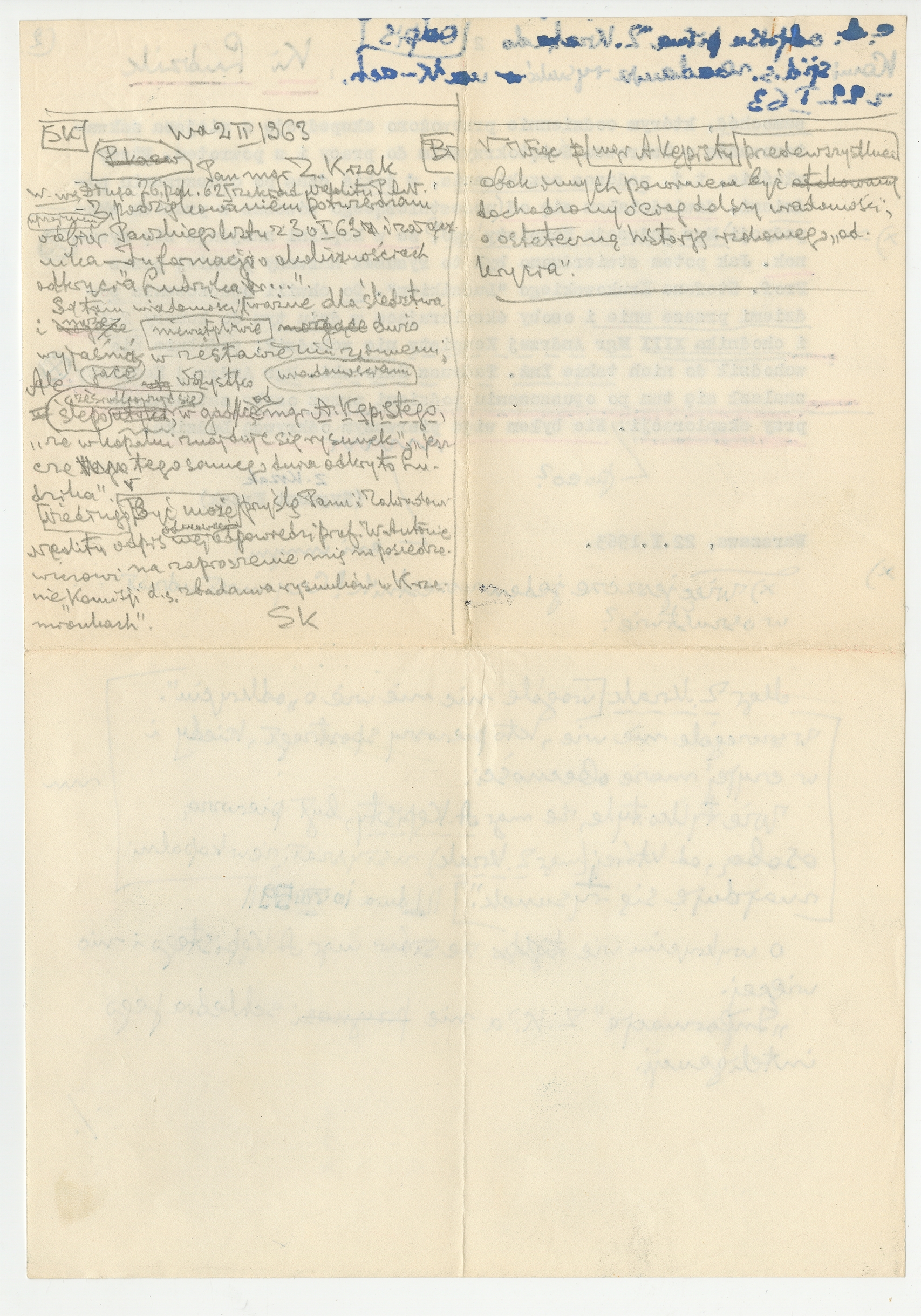Rękopis - brudnopis listu Stefana Krukowskiego z dnia 2 II 1963 roku do Zygmunta Krzaka
