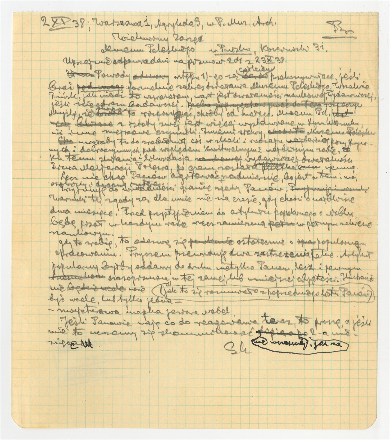 Rękopis - brudnopis listu Stefana Krukowskiego z dnia 2 XI [19]38 roku do Zarządu Muzeum Poleskiego w Pińsku