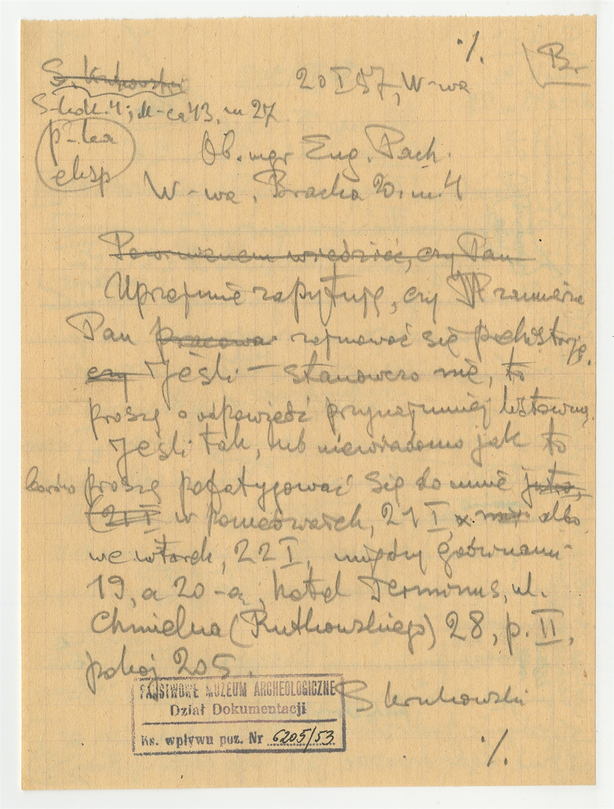 Rękopis - brudnopis listu Stefana Krukowskiego z dnia 20 I [19]57 roku do Eugeniusza Pacha
