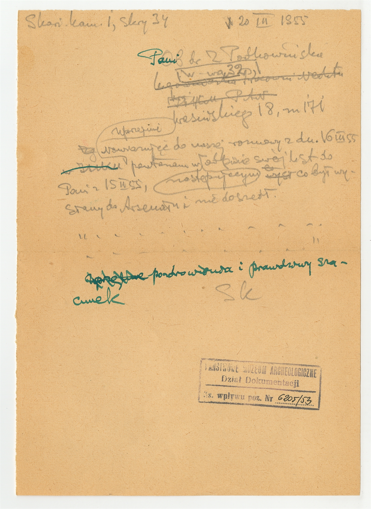 Rękopis - brudnopis listu Stefana Krukowskiego z dnia 20 III [19]55 roku do Z. Podkowińskiej