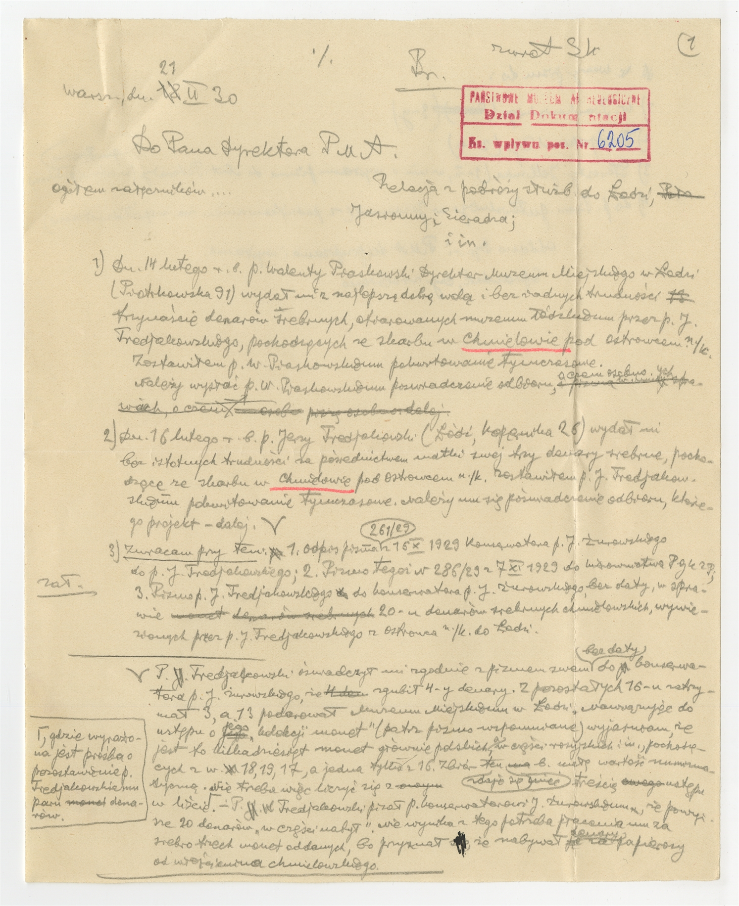 Rękopis - brudnopis listu Stefana Krukowskiego z dnia 21 II [19]30 roku do dyrektora PMA - strona 1