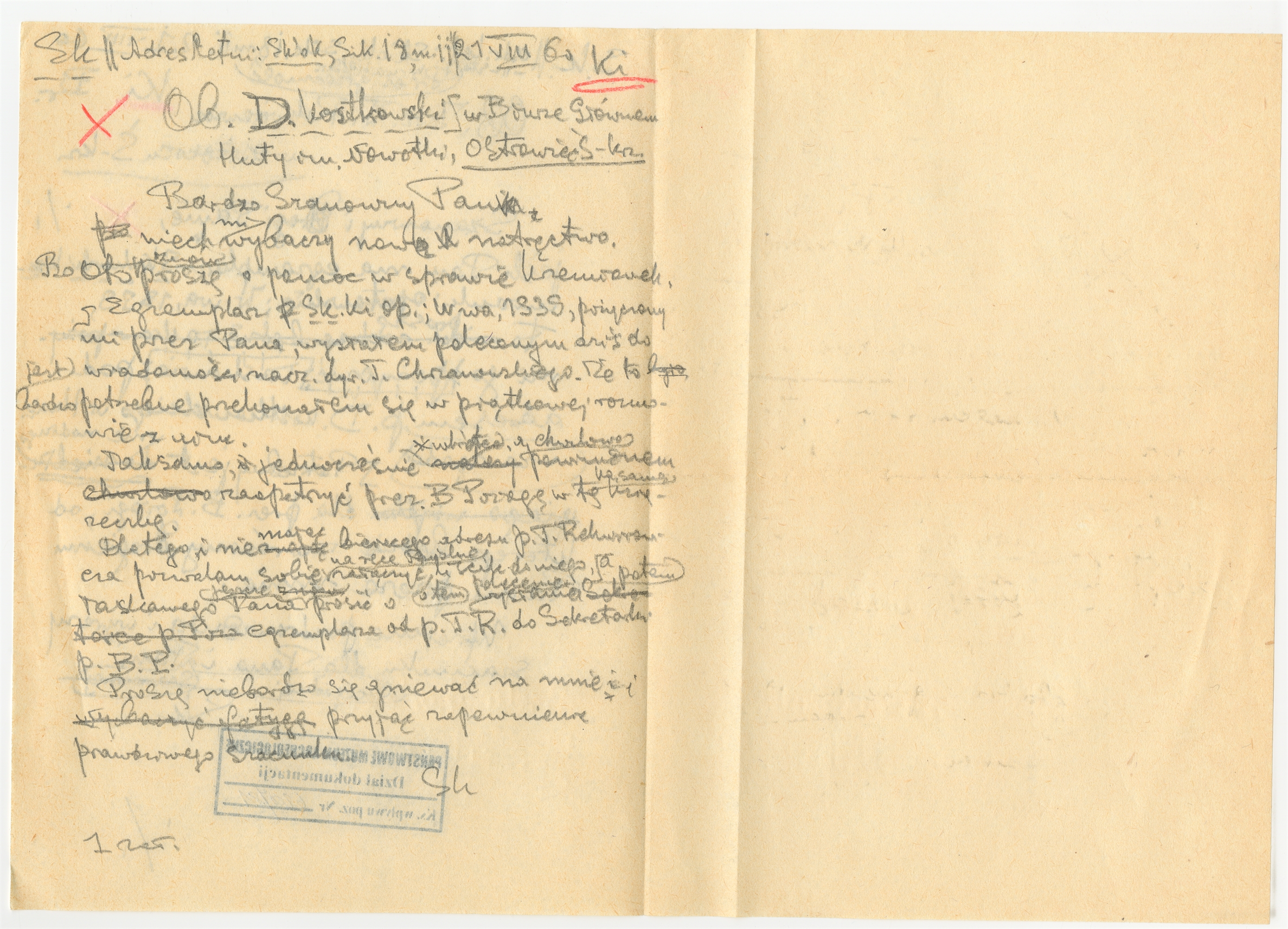Rękopis - brudnopis listu Stefana Krukowskiego z dnia 21 VIII [19]60 roku do D. Kostkowskiego
