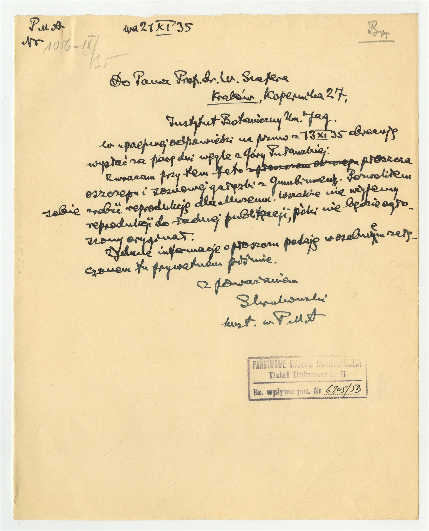 Rękopis - brudnopis listu Stefana Krukowskiego z dnia 21 XI [19]35 roku do Władysława Szafera