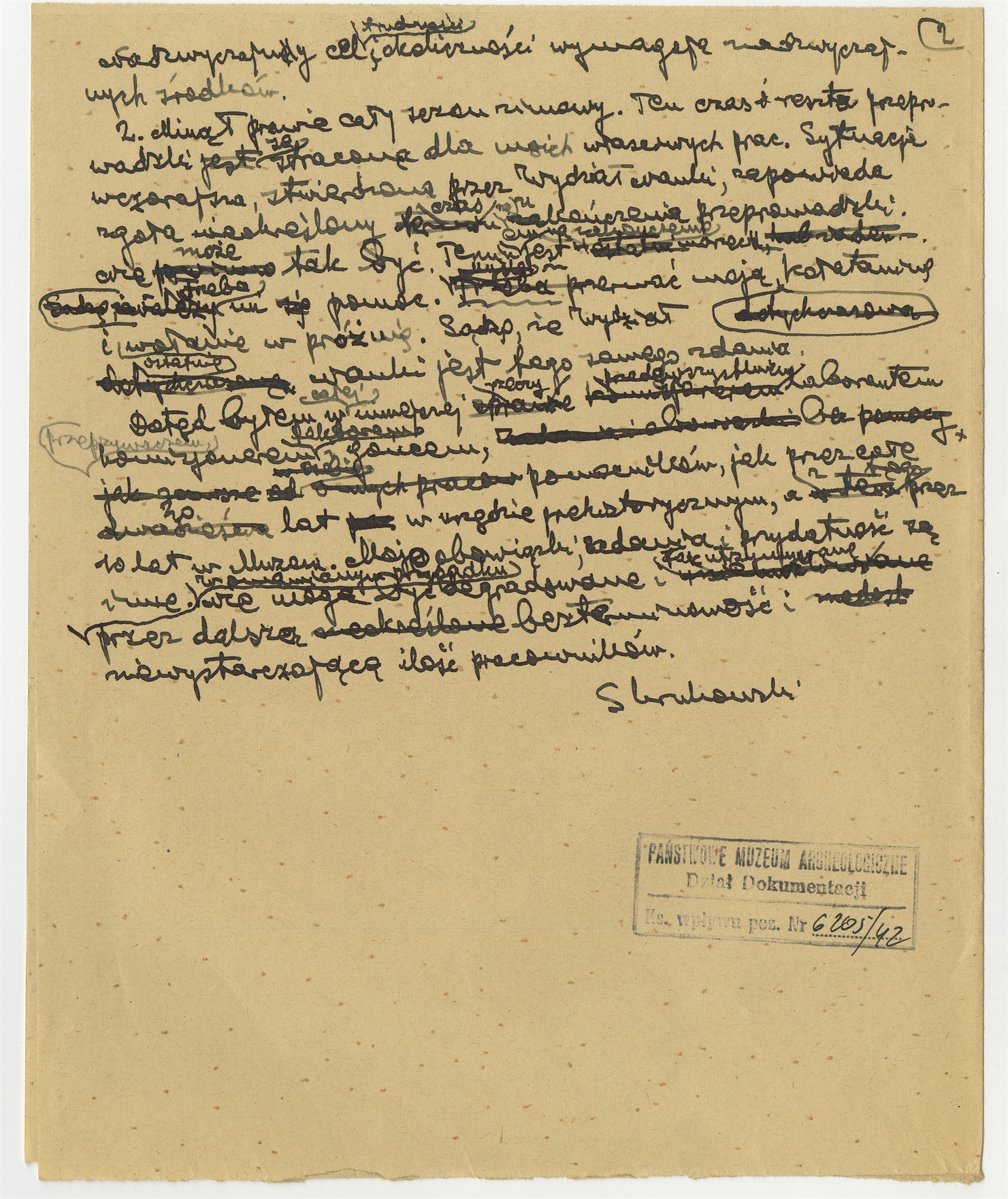 Rękopis - brudnopis listu Stefana Krukowskiego z dnia 23 lutego 1939 roku do Naczelnika Wydziału Nauki Ministerstwa W.R. i O.P. w sprawie przeprowadzki. Strona 2
