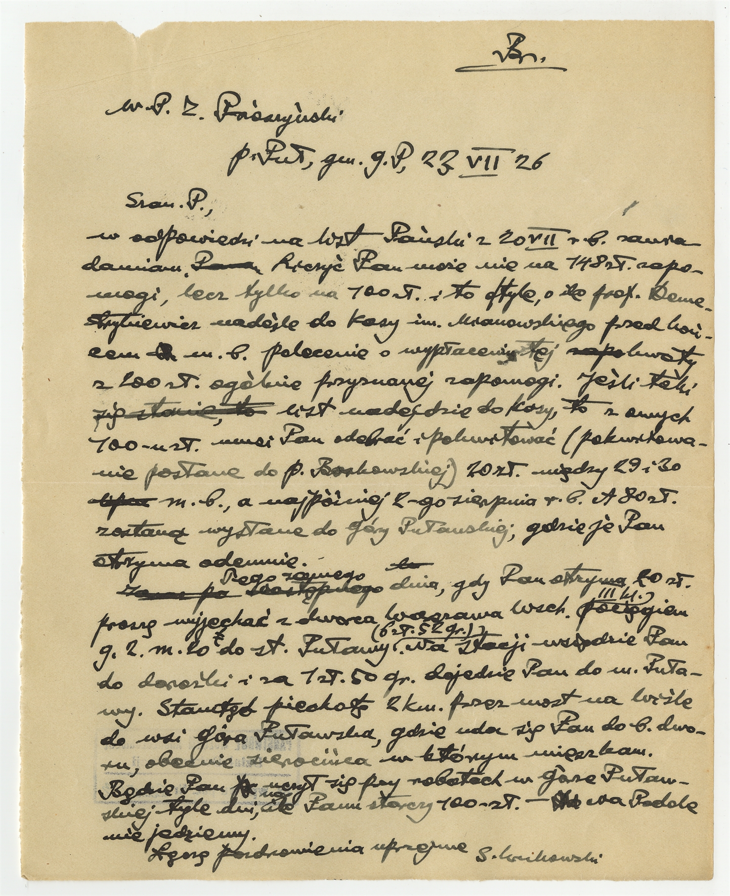 Rękopis - brudnopis listu Stefana Krukowskiego z dnia 23 VII [19]26 roku do Z. Prószyńskiego