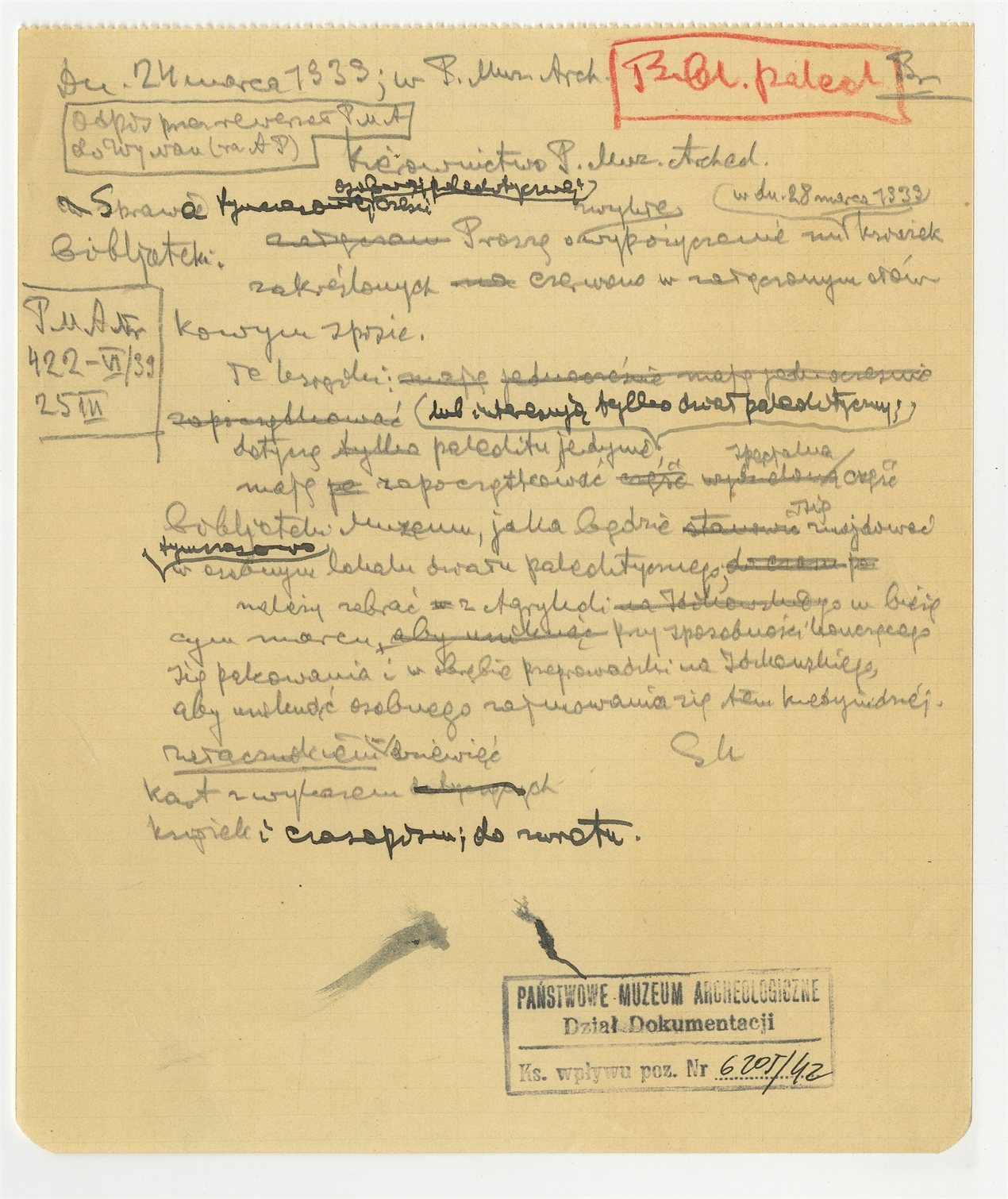 Rękopis - brudnopis listu Stefana Krukowskiego z dnia 24 marca 1939 roku do kierownictwa PMA w sprawie wypożyczenia książek