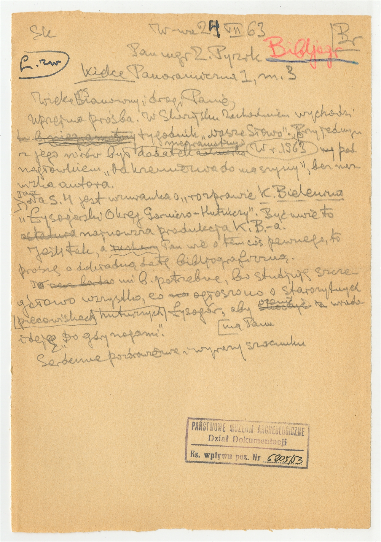 Rękopis - brudnopis listu Stefana Krukowskiego z dnia 24 VII [19]63 roku do Zygmunta Pyzika