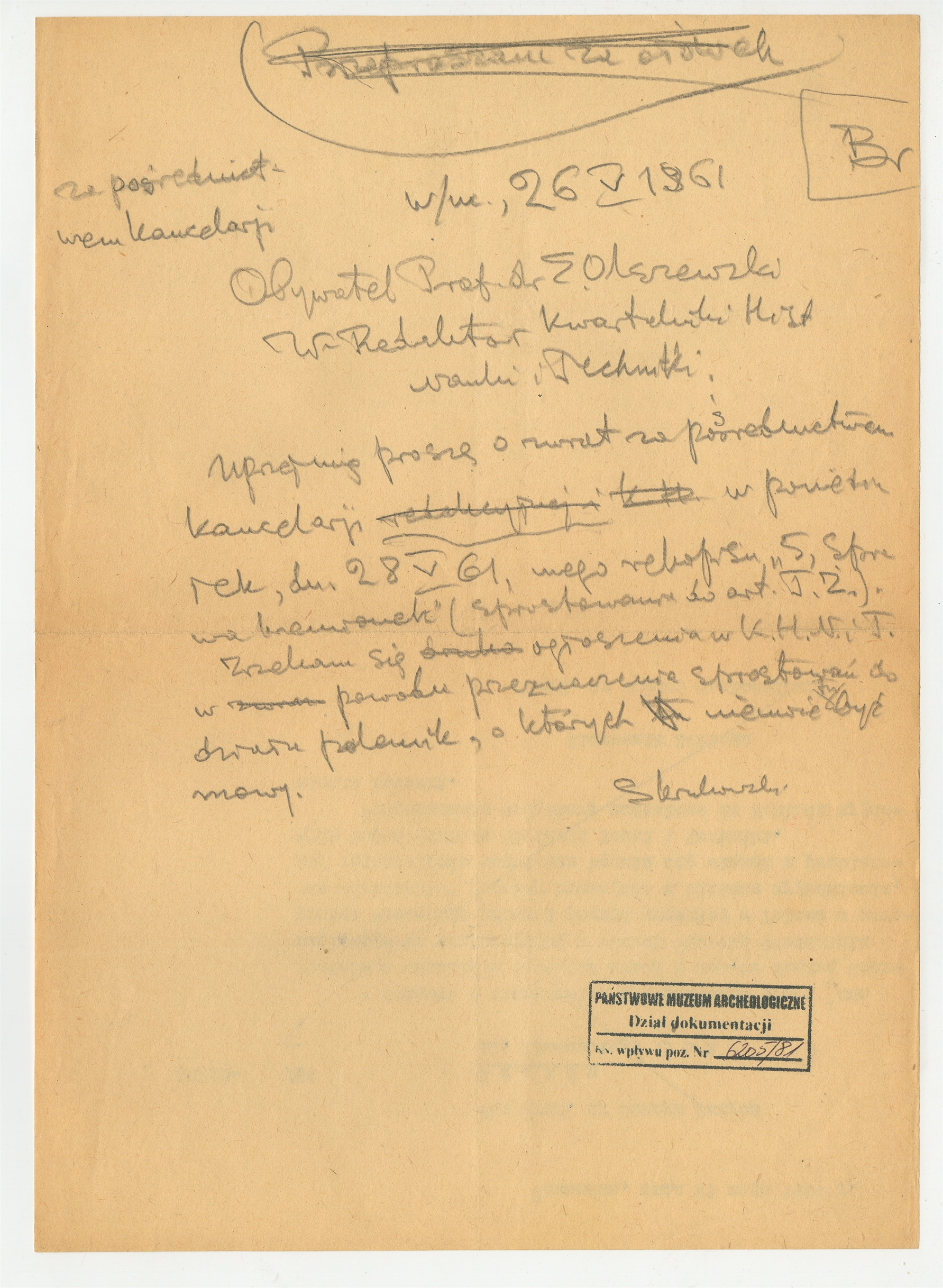 Rękopis - brudnopis listu Stefana Krukowskiego z dnia 26 V 1961 roku do E. Olszewskiego