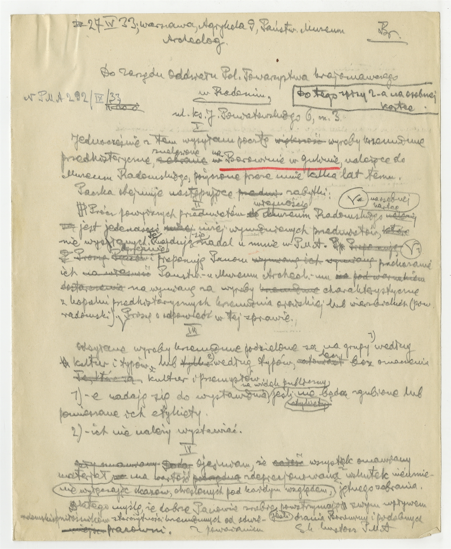 Rękopis - brudnopis listu Stefana Krukowskiego z dnia 27 IV [19]33 roku do Zarządu Oddziału PTK w Radomiu