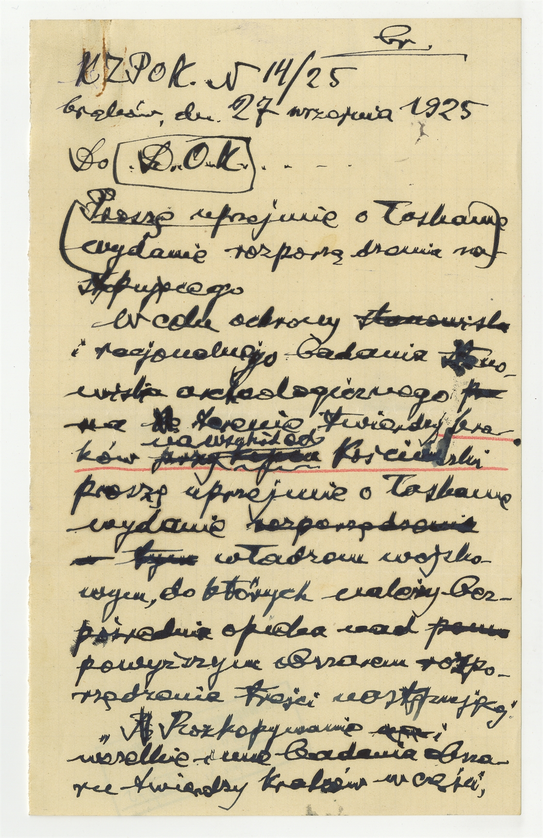 Rękopis - brudnopis listu Stefana Krukowskiego z dnia 27 września 1925 roku do D.O.K.