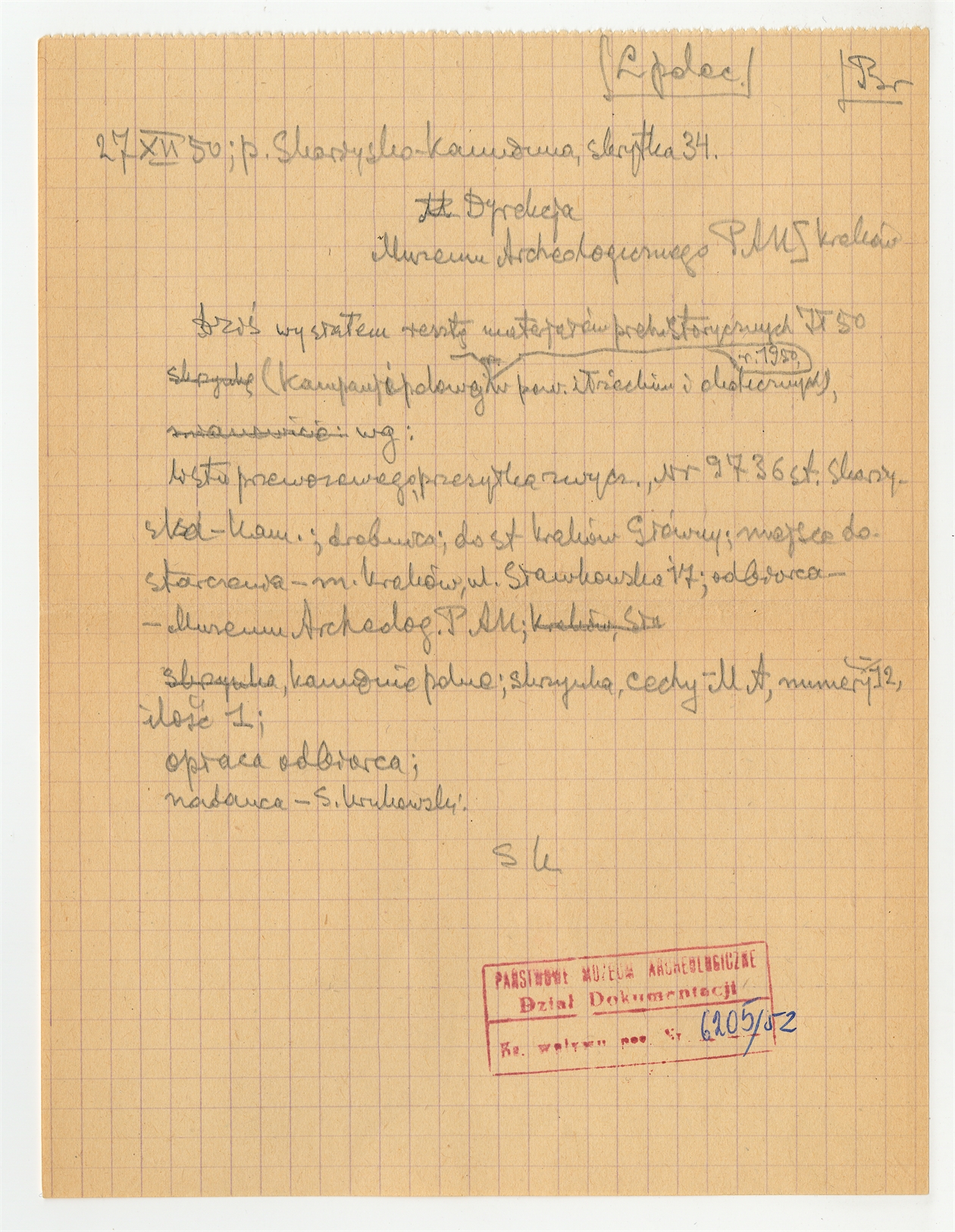 Rękopis - brudnopis listu Stefana Krukowskiego z dnia 27 XII [19]50 roku do Dyrekcji Muzeum Archeologicznego PAU w Krakowie