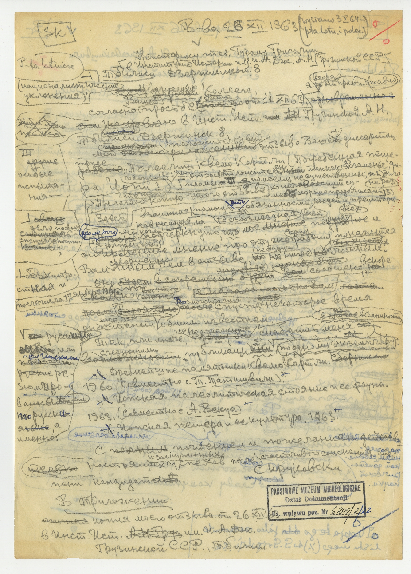 Rękopis - brudnopis listu Stefana Krukowskiego z dnia 28 XII 1963 roku w języku rosyjskim do G. Grigolija
