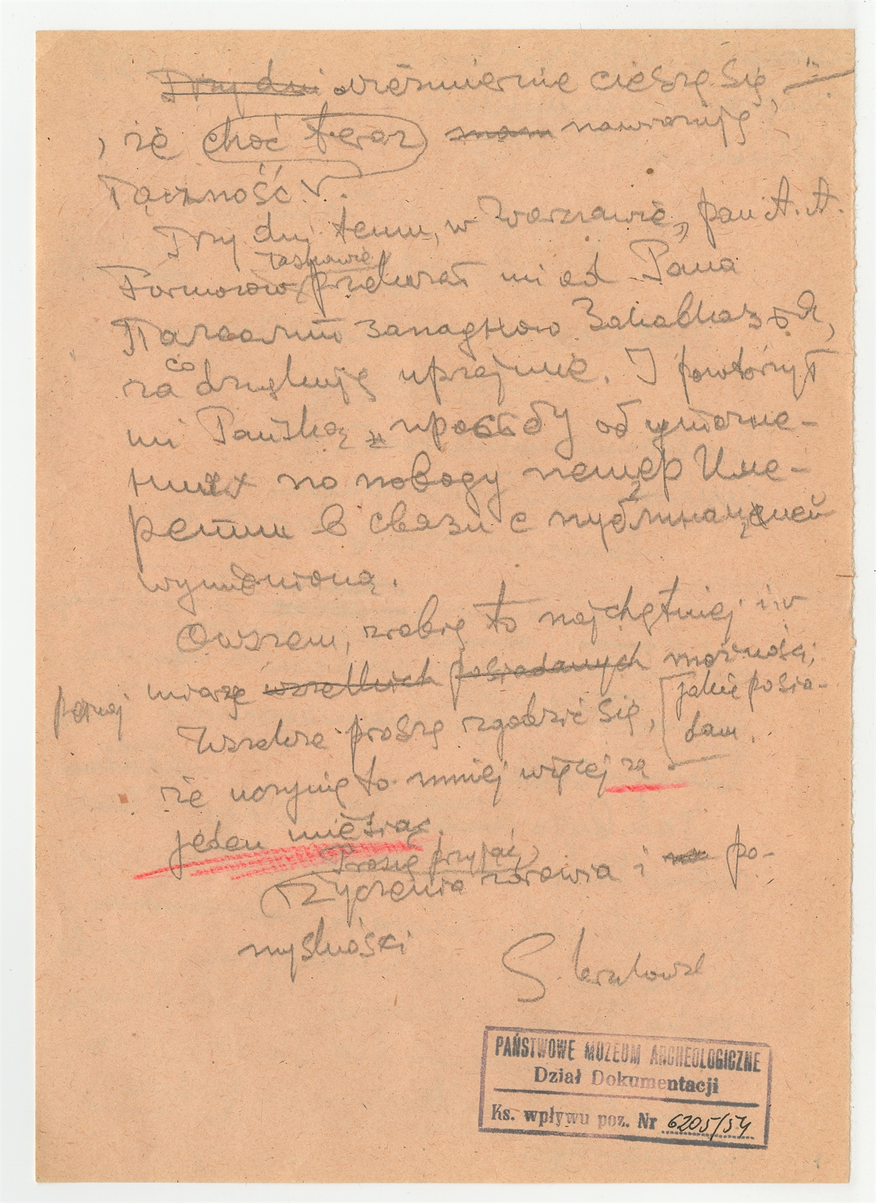 Rękopis - brudnopis listu Stefana Krukowskiego z dnia 30 III 1958 roku do Siergieja Zamiatina (cd)