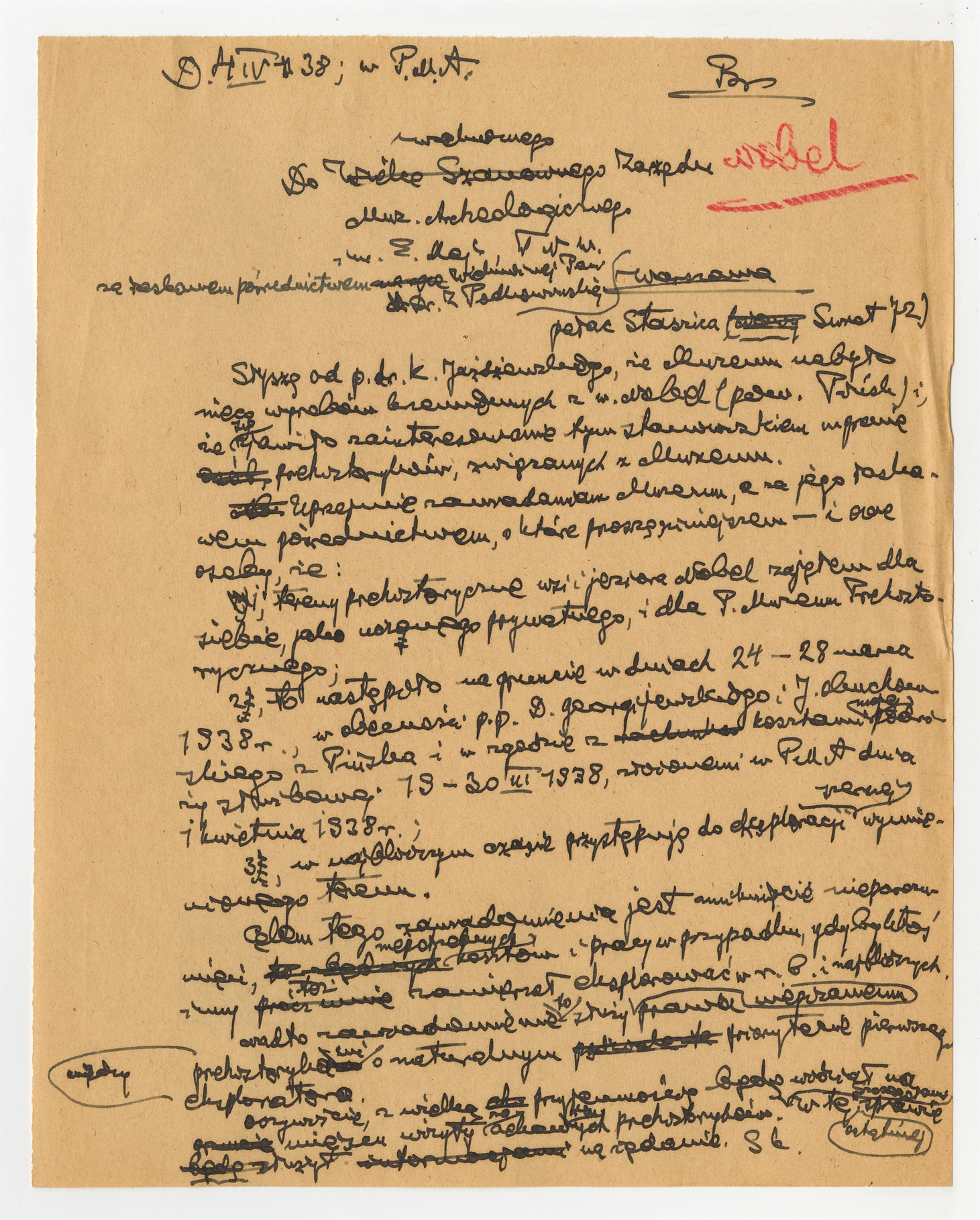 Element 1 - Rękopis - brudnopis listu Stefana Krukowskiego z dnia 4 IV [19]38 roku do Zarządu Muzeum Archeologicznego im. E. Majewskiego