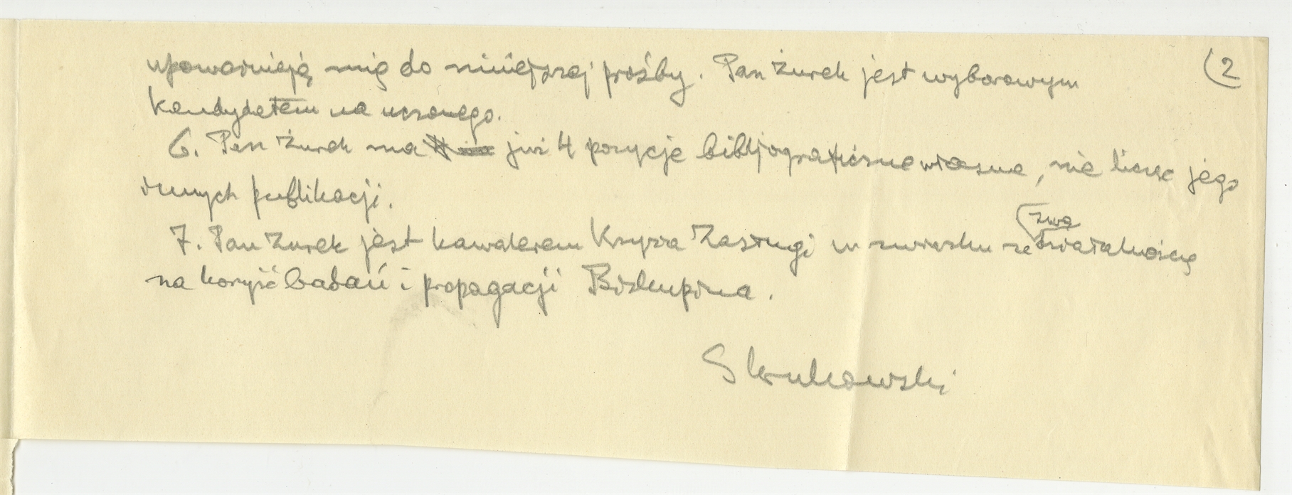 Rękopis - brudnopis listu Stefana Krukowskiego z dnia 4 kwietnia do Wydziału Nauki w Ministerstwie W.R i O.P. dotyczący wysokości pensji Jana Żurka. Strona 2