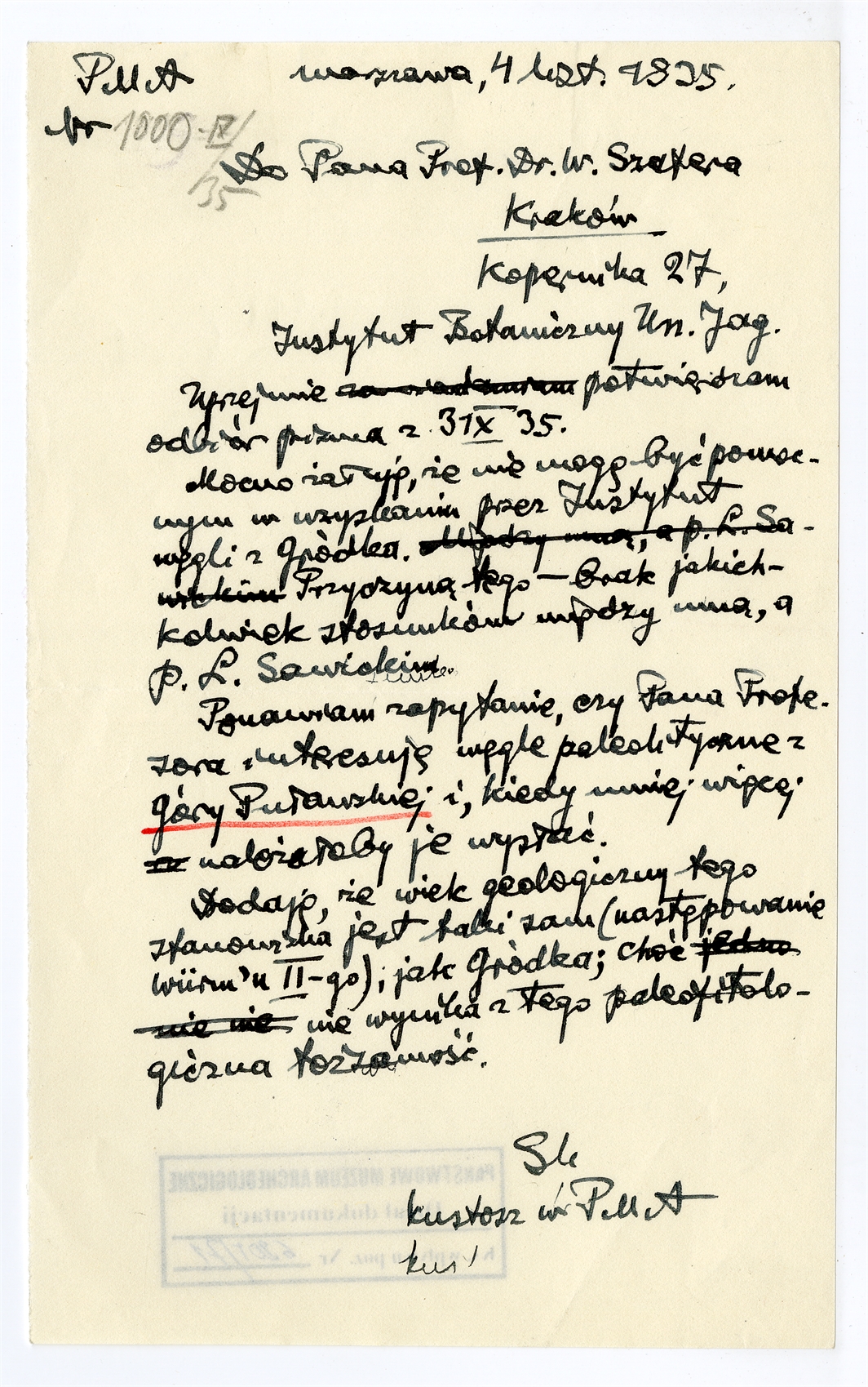 Rękopis - brudnopis listu Stefana Krukowskiego z dnia 4 listopada 1935 roku do W. Szafera