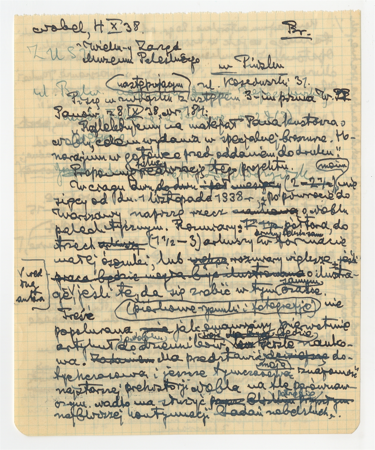 Rękopis - brudnopis listu Stefana Krukowskiego z dnia 4 X [19]38 roku do Zarządu Muzeum Poleskiego w Pińsku