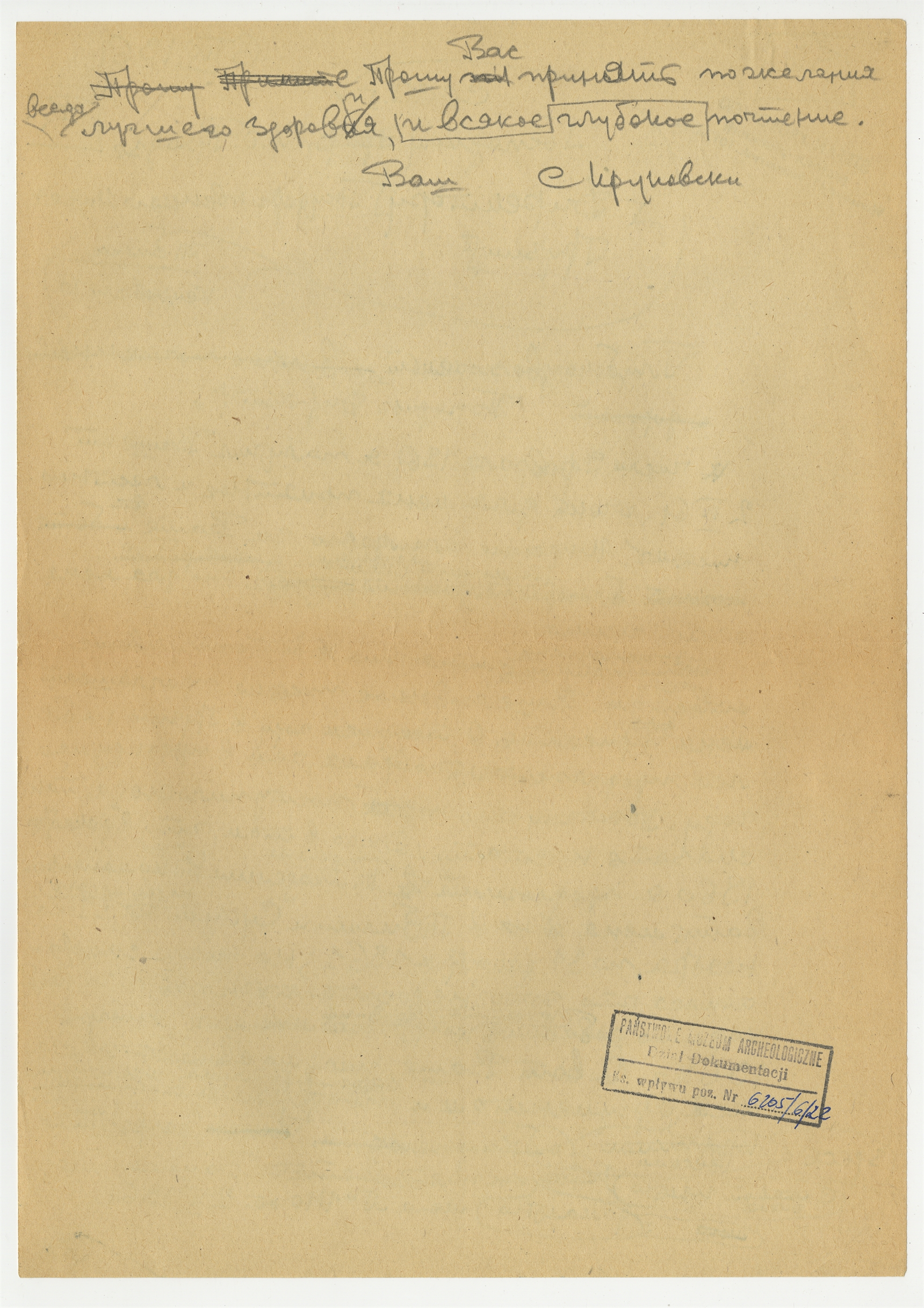 Rękopis - brudnopis listu Stefana Krukowskiego z dnia 6 III 1961 roku do I.O. Ruhadze dyrektora Państwowego Muzeum Gruzji (cd)