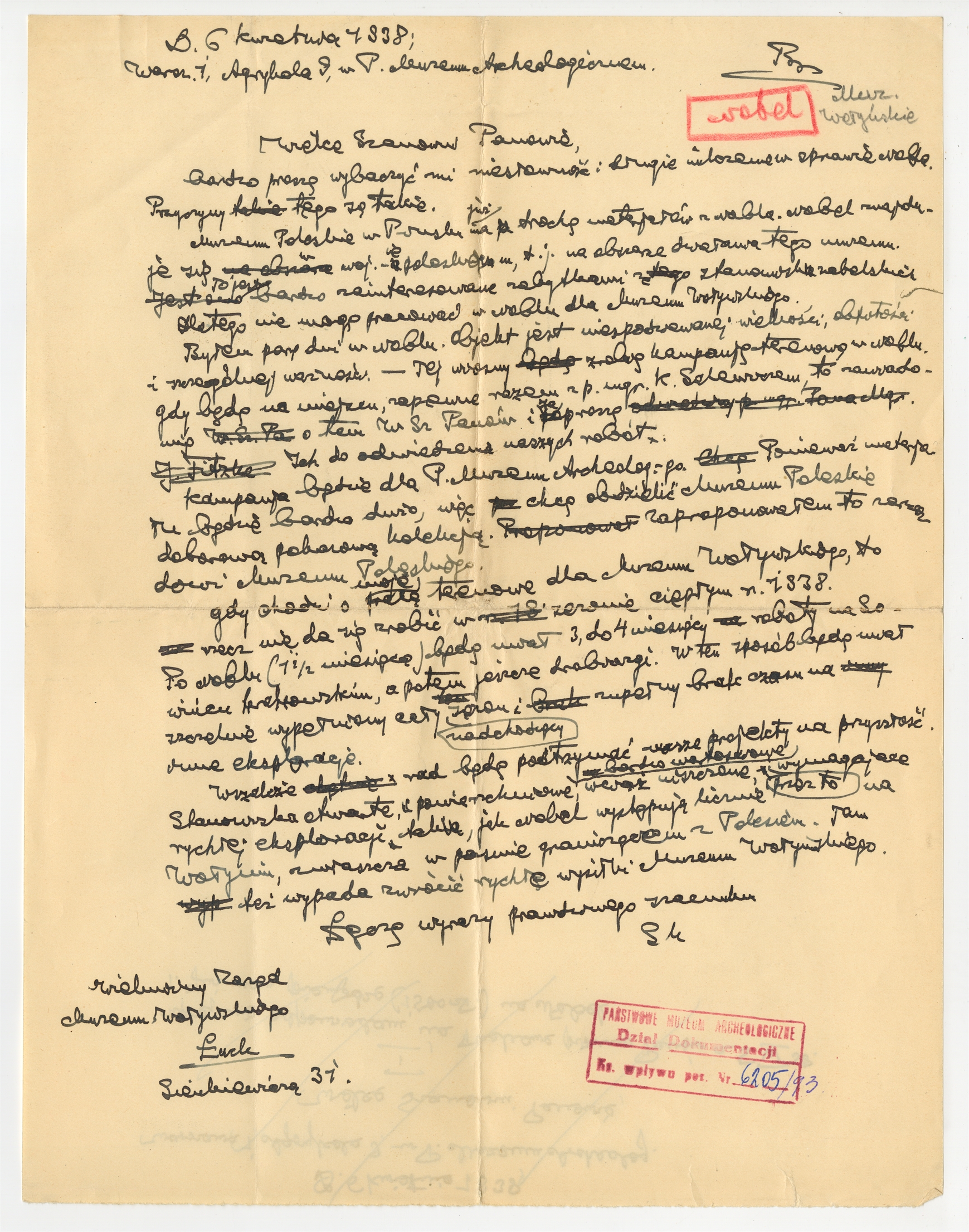 Rękopis - brudnopis listu Stefana Krukowskiego z dnia 6 kwietnia 1938 roku do Zarządu Muzeum Wołyńskiego w Łucku