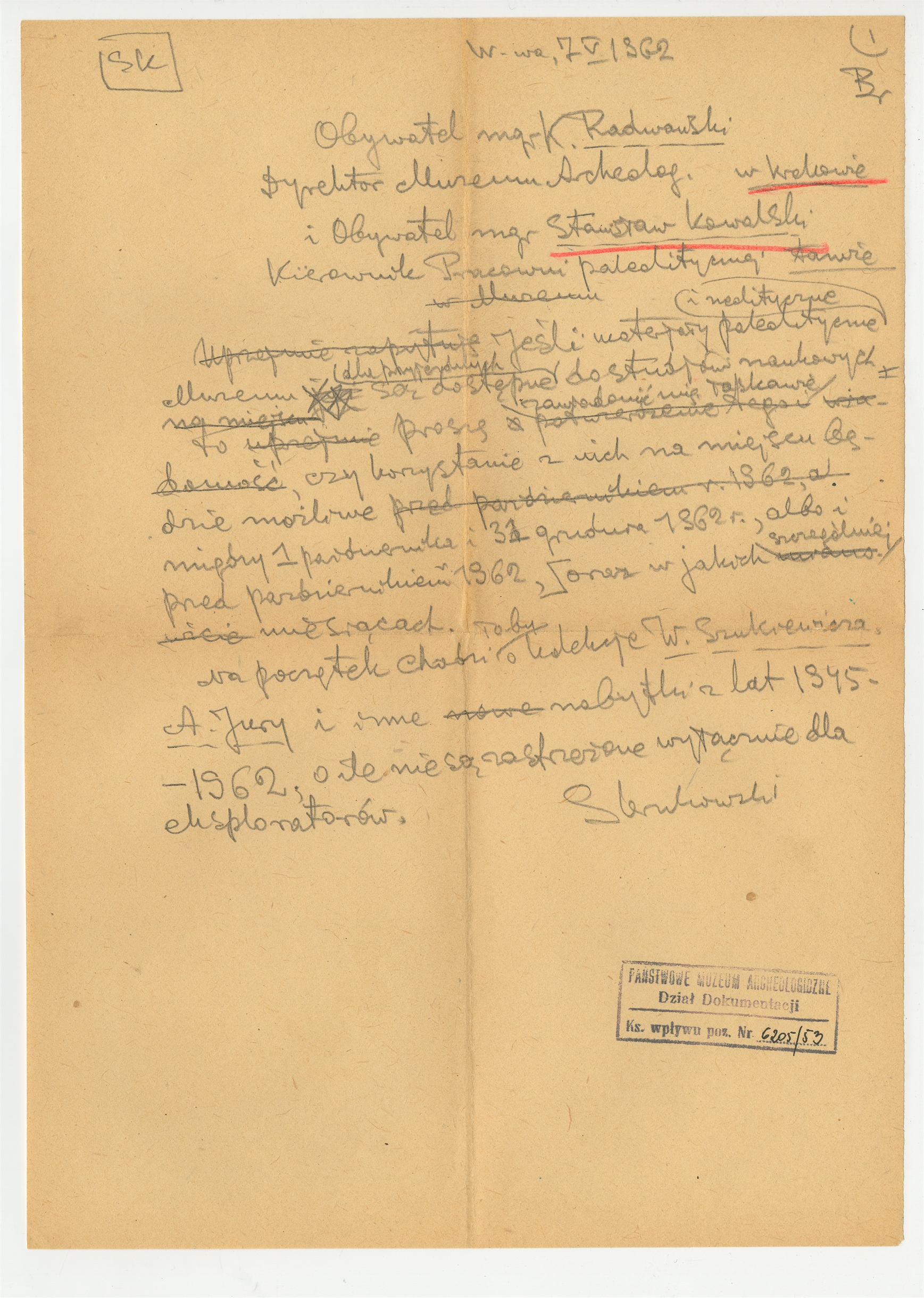 Rękopis - brudnopis listu Stefana Krukowskiego z dnia 7 V 1962 do Kazimierza Radwańskiego