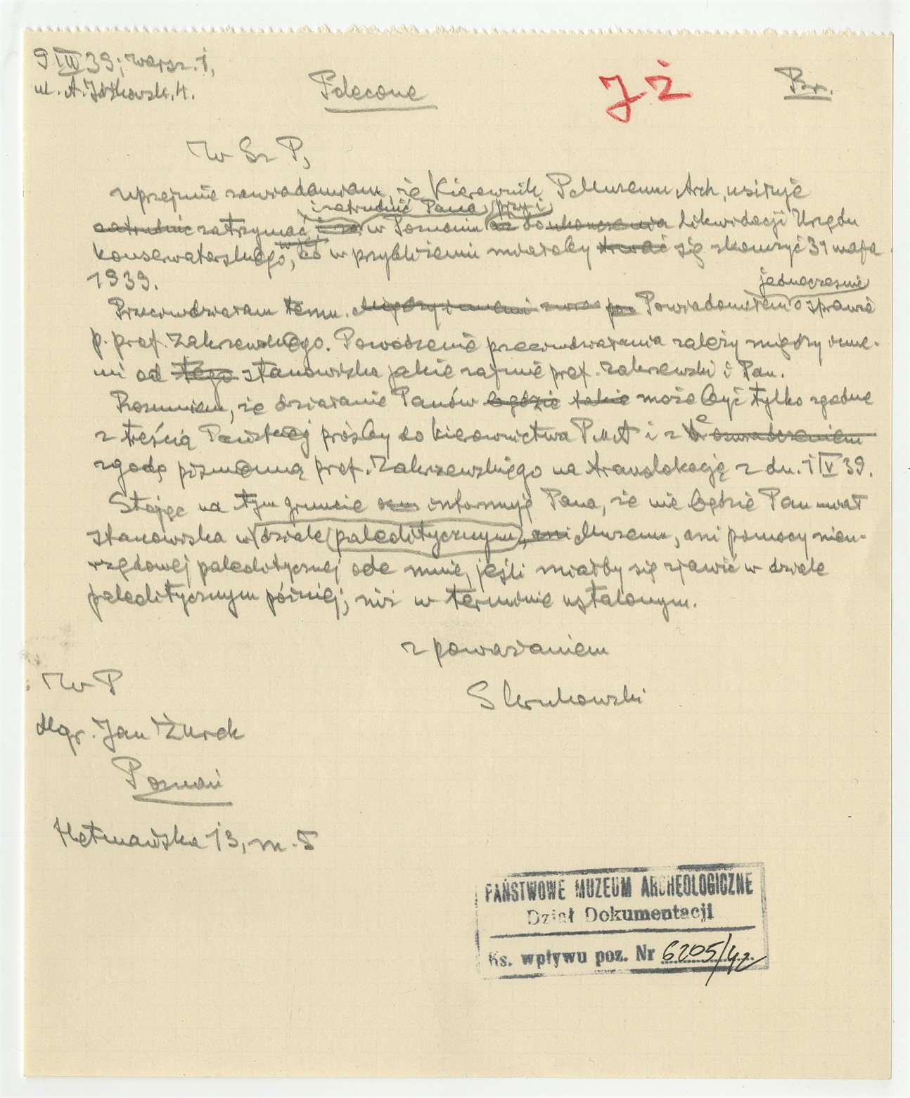 Rękopis - brudnopis listu Stefana Krukowskiego z dnia 9 III [19]39 roku do Jana Żurka