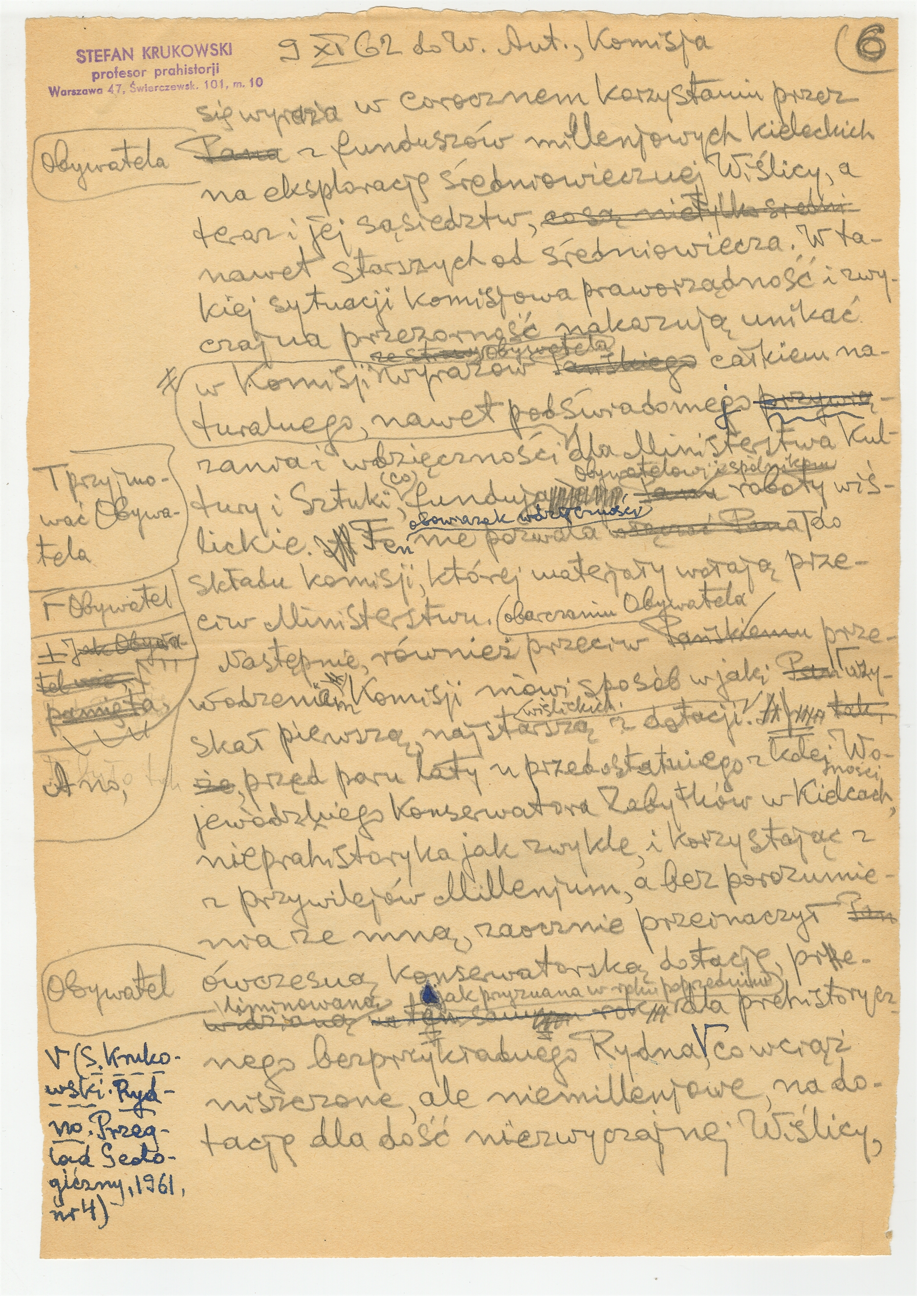 Rękopis - brudnopis listu Stefana Krukowskiego z dnia 9 XI 1962 do W. Ant[oniewicza] pt.: "Pierwsza komisja od falsyfikatów krzemioneckich". Strona 6