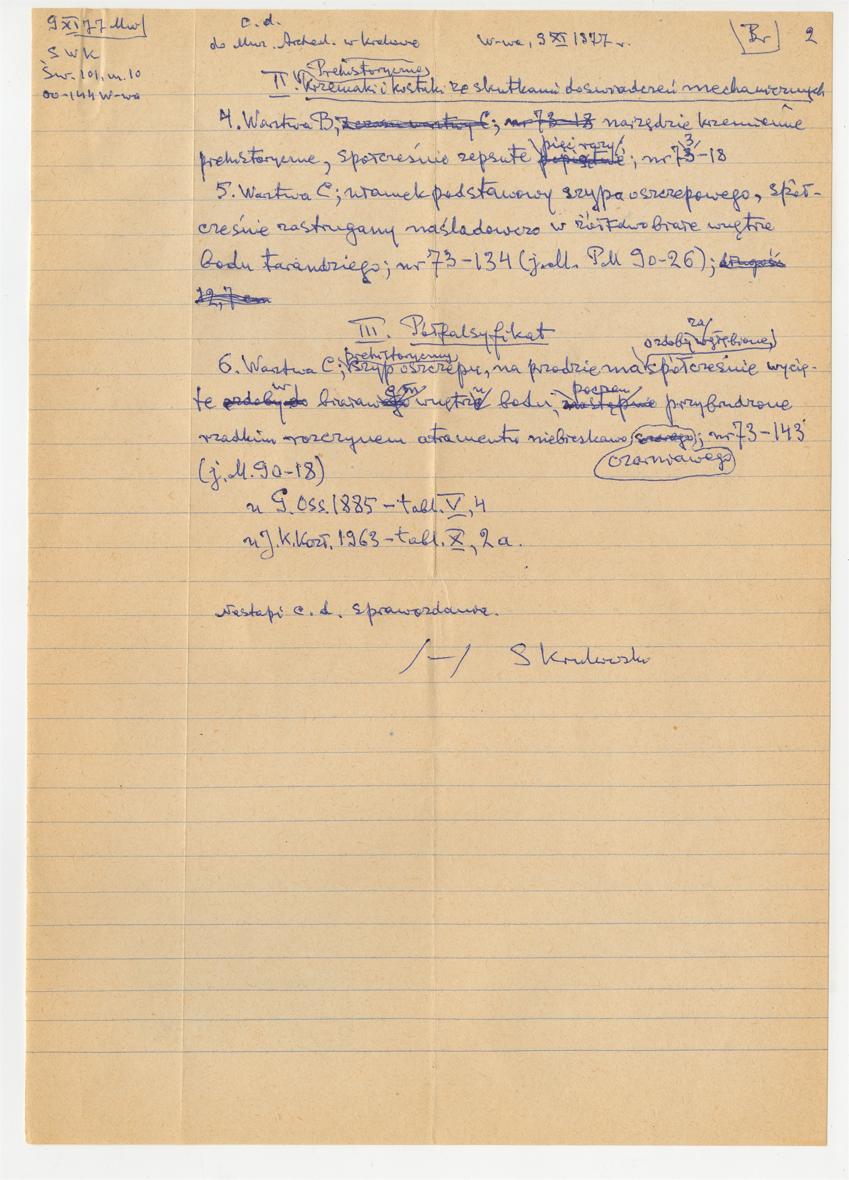 Rękopis - brudnopis listu Stefana Krukowskiego z dnia 9 XI 1977 roku do Muzeum Archeologicznego w Krakowie - strona 2