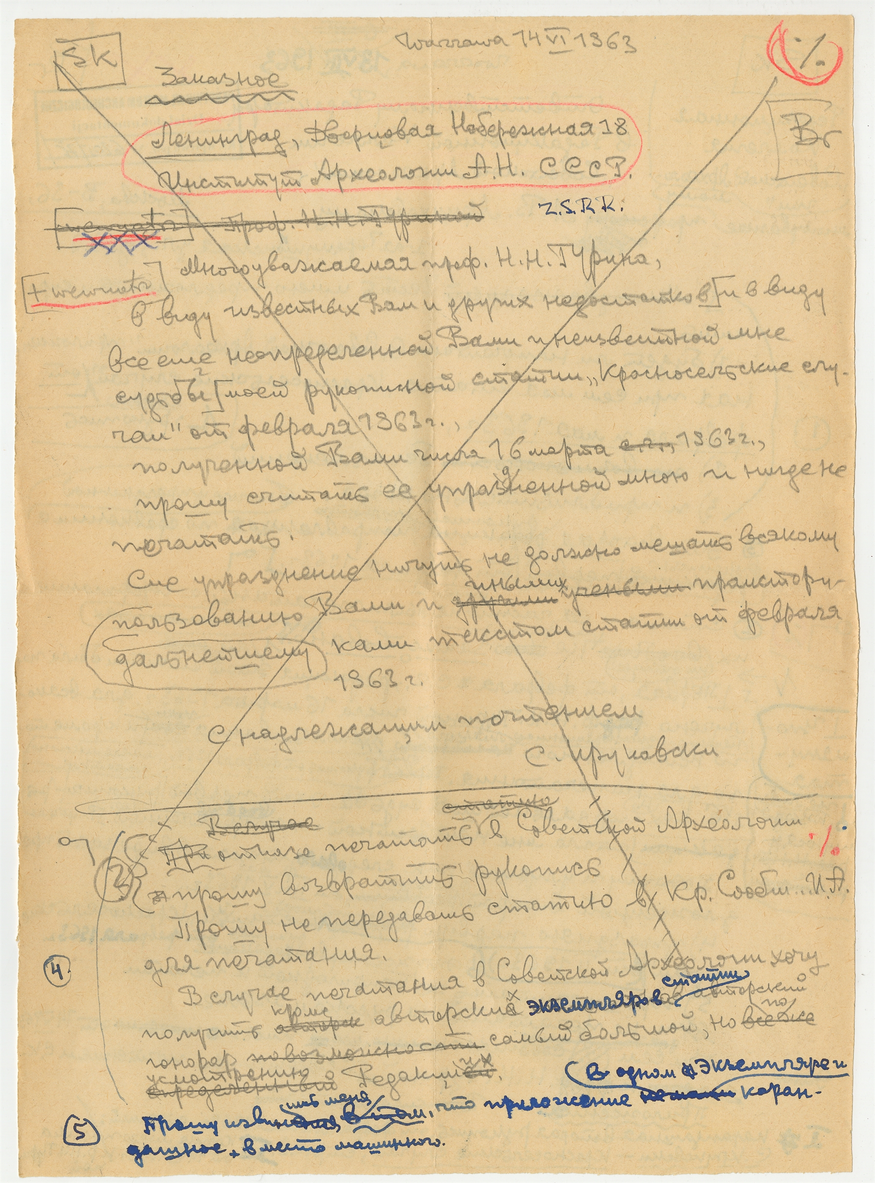Rękopis - brudnopis listu w j. rosyjskim Stefana Krukowskiego z dnia 13 VII 1963 roku do redakcji "????????? ?????????" (cd)