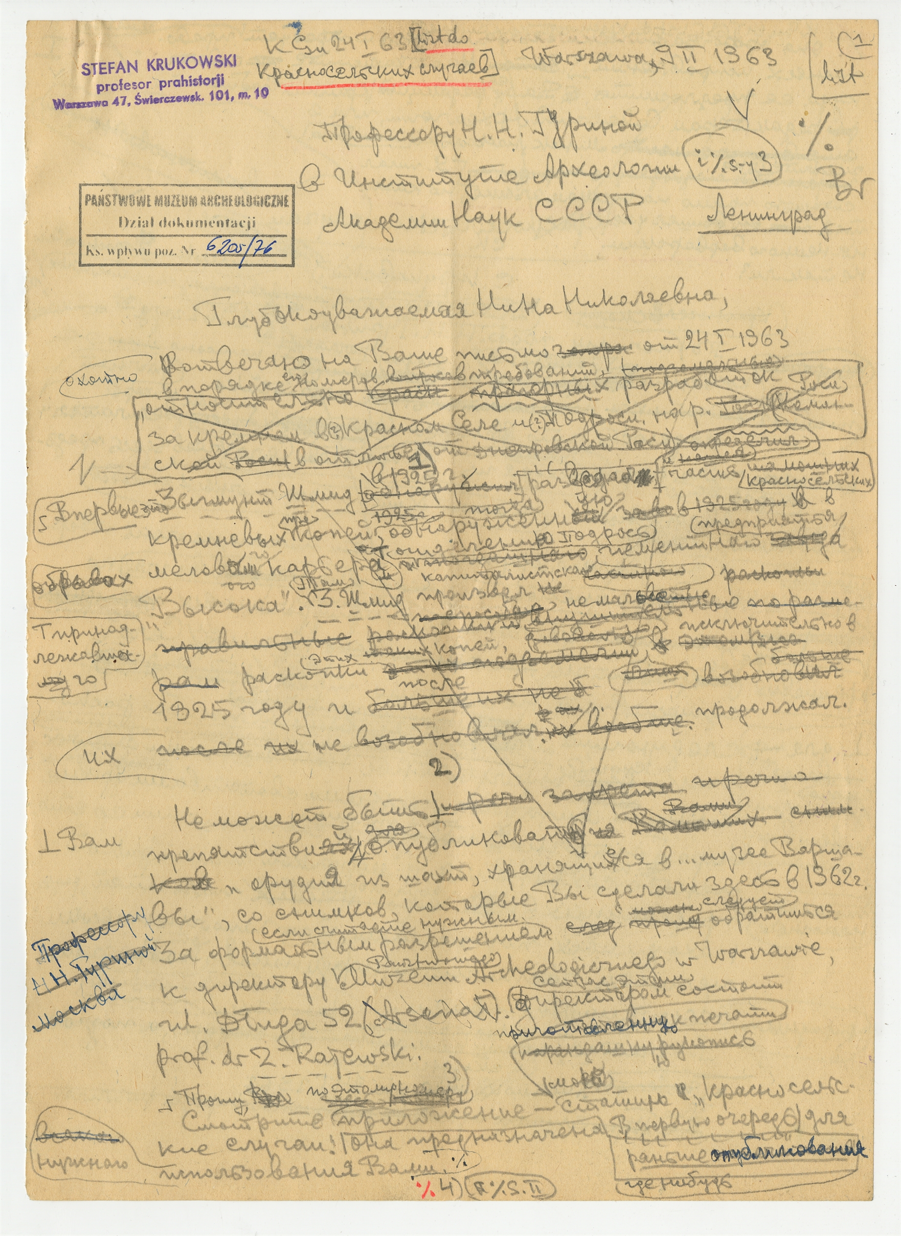 Rękopis - brudnopis listu w j. rosyjskim Stefana Krukowskiego z dnia 9 II 1963 roku do Niny Guriny. Strona 1