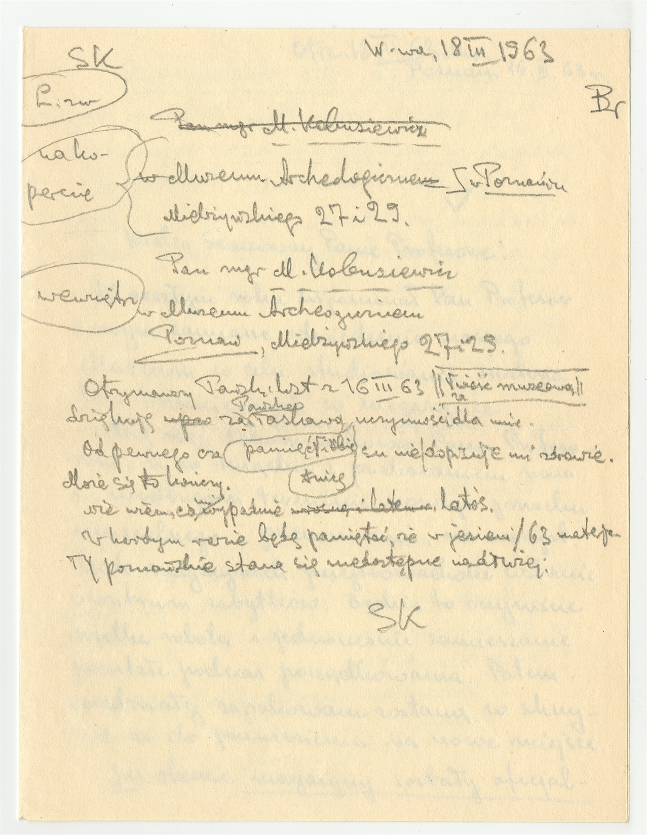 Rękopis - brudnopis odpowiedzi Stefana Krukowskiego z dnia 18 III 1963 roku na ten list