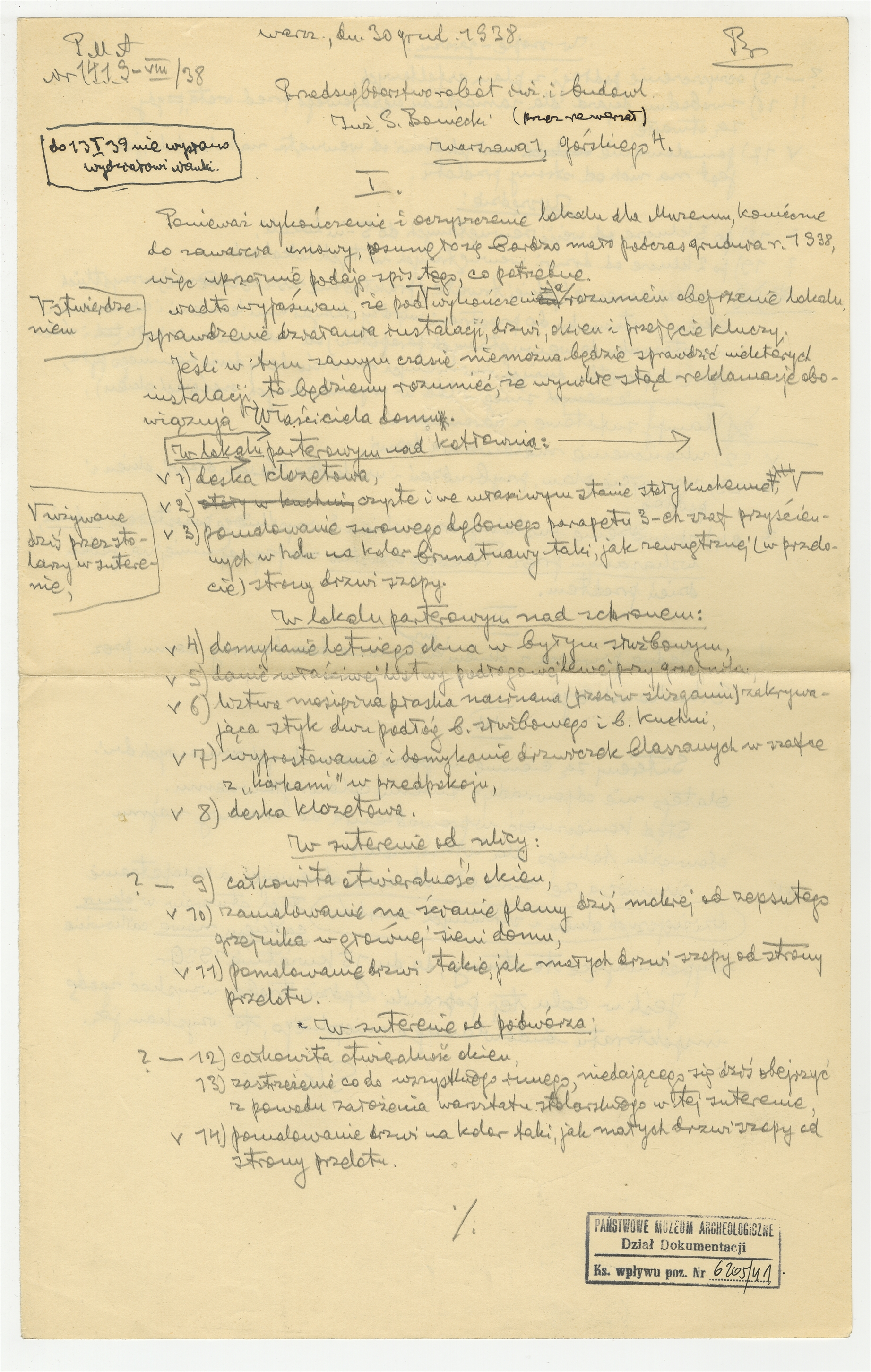 Rękopis-brudnopis pisma (egzemplarz drugi) Stefana Krukowskiego z dn 30 XII [19]38 r. skierowanego do inż. S. Bonieckiego: "Ponieważ wykończenie i oczyszczenie […]"