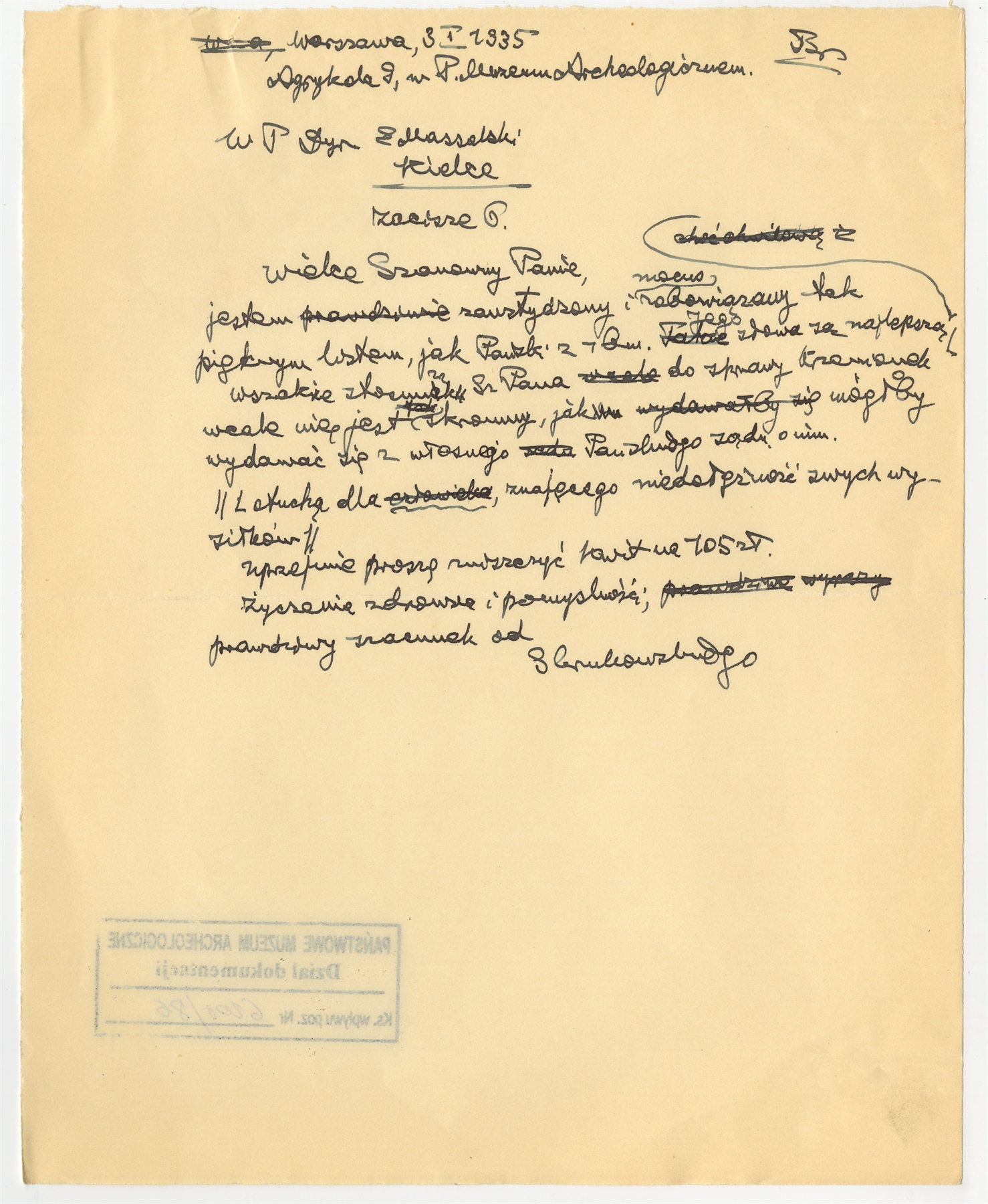 Rękopis-brudnopis pisma prof. Stefana Krukowskiego do E. Massalskiego z dnia 3 I 1935 r.