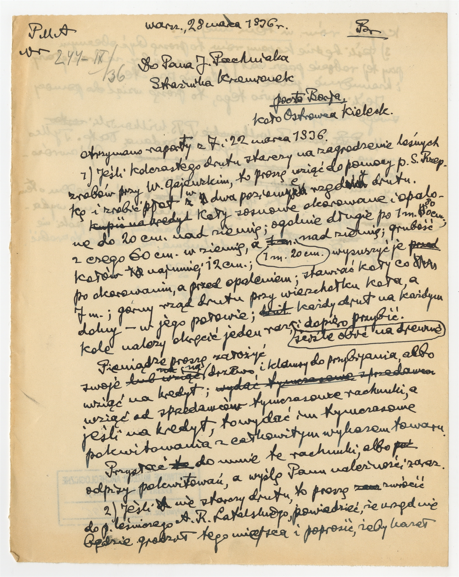 Rękopis-brudnopis pisma prof. Stefana Krukowskiego do J. Pachniaka z dnia 28 marca 1936 r.