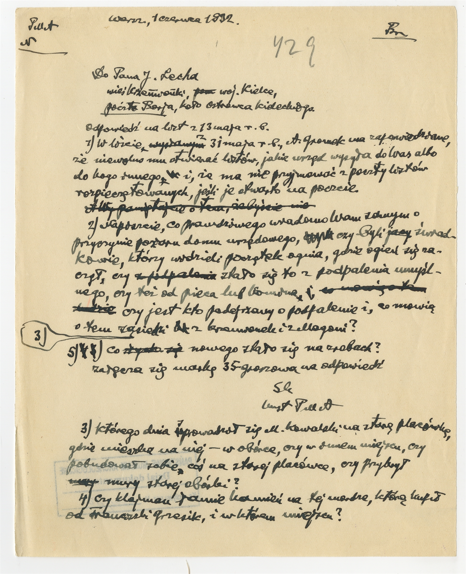 Rękopis-brudnopis pisma prof. Stefana Krukowskiego do p. J. Lecha z dnia 1 czerwca 1932 r.