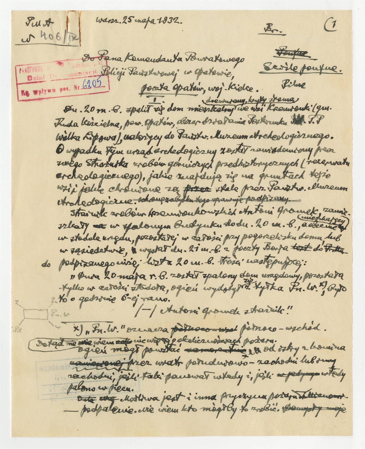Rękopis-brudnopis pisma prof. Stefana Krukowskiego "Do Pana Komendanta Powiatowego Policji Państwowej w Opatowie …" z dnia 25 maja 1932 r.