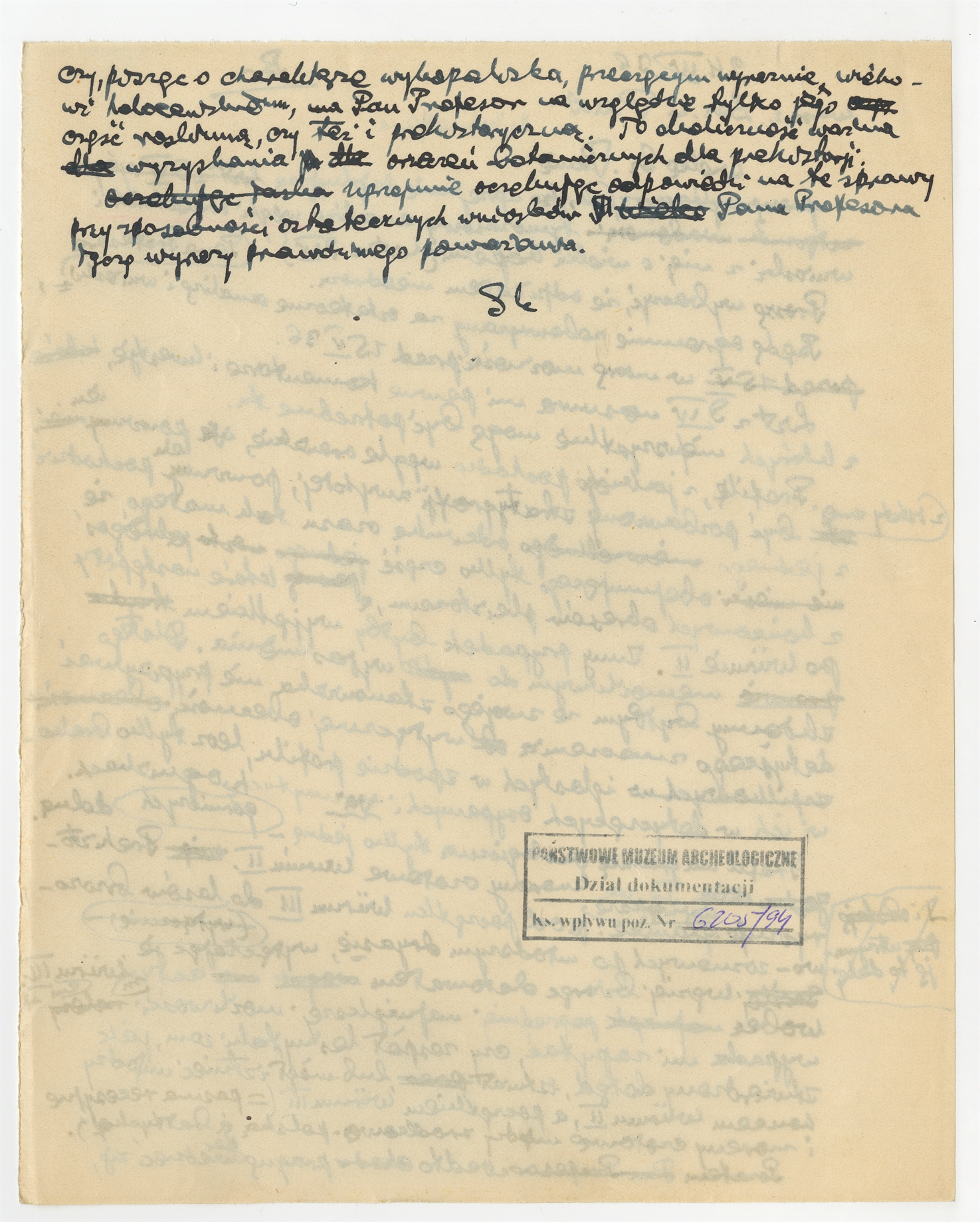 Rękopis - brudnopis pisma prof. Stefana Krukowskiego do W. Szafera Warszawa 24 III 1936 r. - "…czy pisząc o charakterze wykopaliska…"